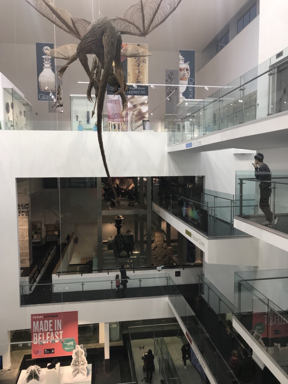 位于植物园里面的博物馆靠着女王大学,虽然位于城区最南侧的附近但规模确实是整个北爱尔兰最大的综合性博物馆。巨大的中庭就被恐龙的骨架悬挂而显得不同,事实上这里很多的底层展品都与恐龙有关,而到楼上则是艺术画作,相对门类比较齐全,但规模比起苏格兰和威尔士的国家博物馆要逊色不少