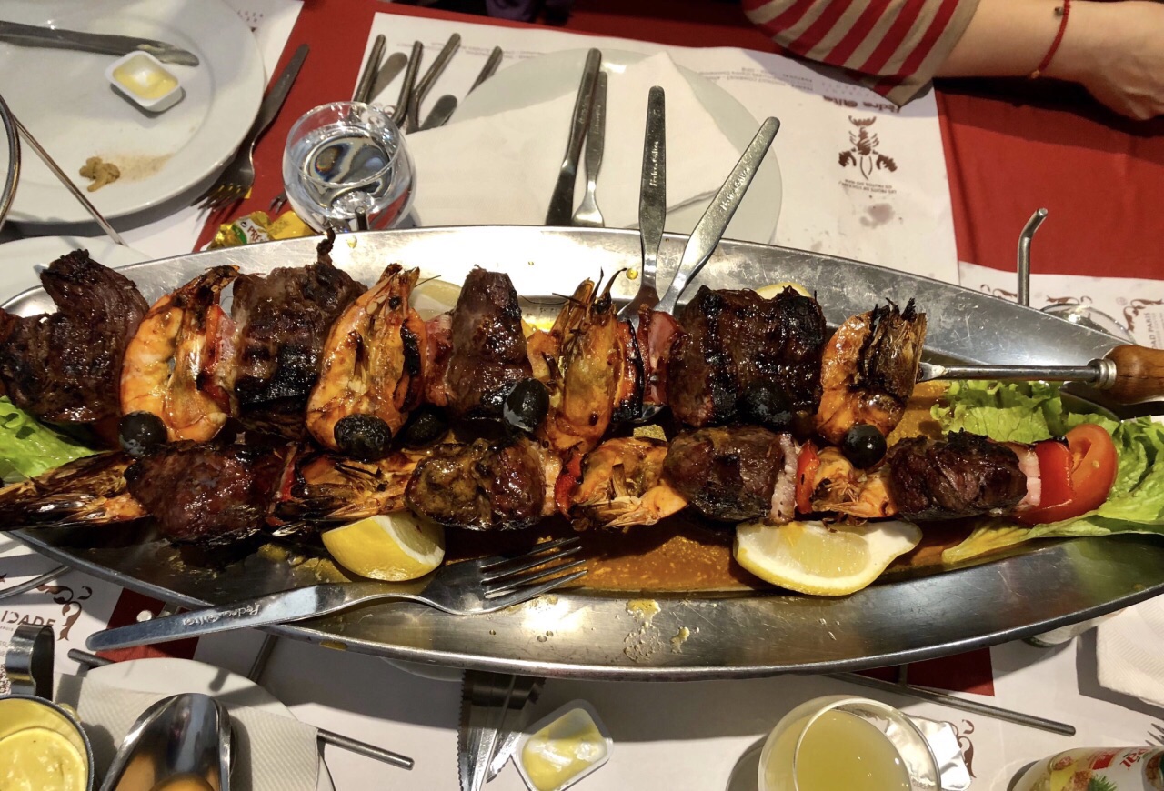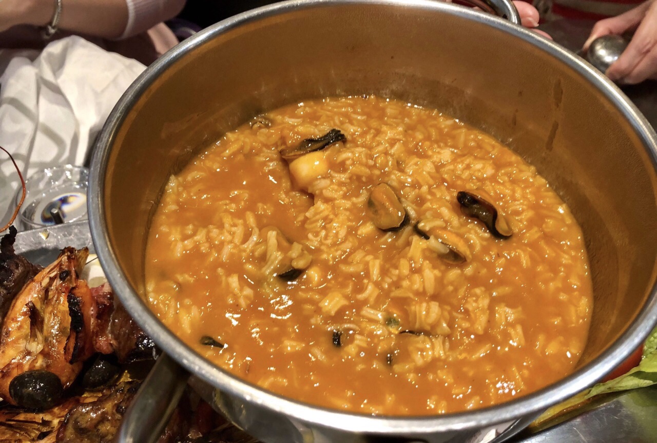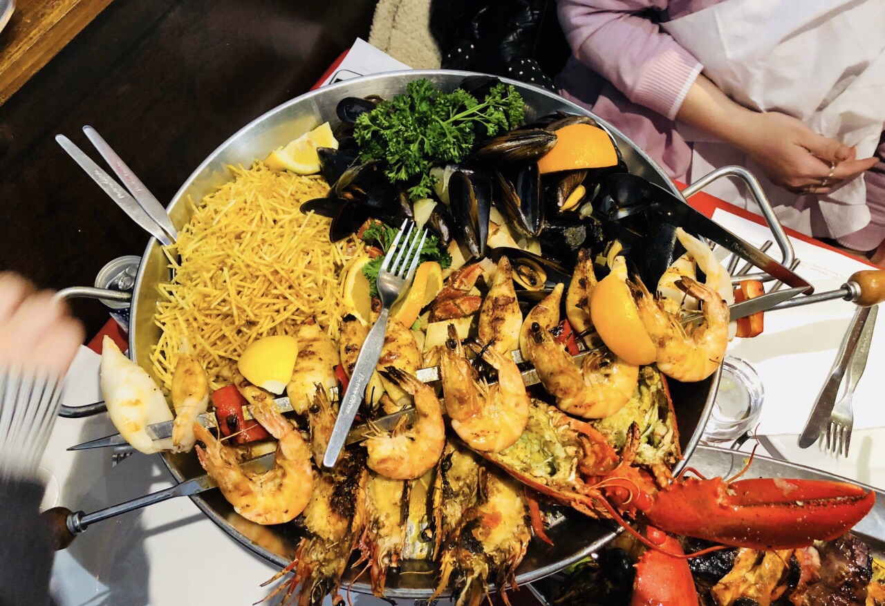 海鲜粥 应该是和海鲜拼盘一起的,别看其貌不扬,喝起来超级爽的好嘛海鲜拼盘 直接看叉子的尺寸就知道这个小份的拼盘有多大,里面有龙虾,螃蟹,青口,大虾,鱿鱼,牛肉串 大块的牛肉,虾,培根.海鲜粥 应该是和海鲜拼盘一起的,别看其貌不扬,喝起来超级爽的好嘛!