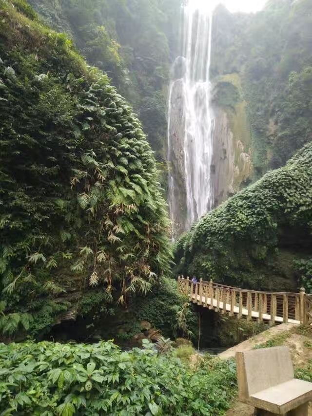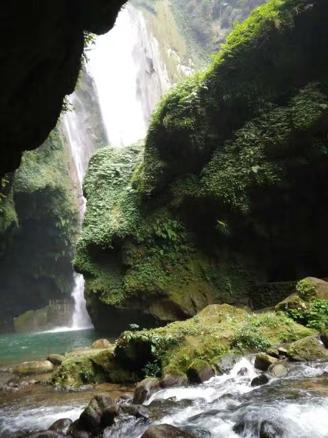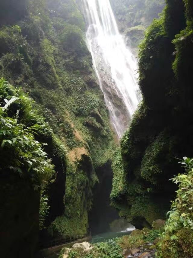 ...布从溶洞上方沿岩壁飞流直下,汇入深潭,与大瀑布一起消失在深不可测的地下河里,来得神奇,去得无踪通灵大瀑布有188米左右,瀑布跌落的深潭边是一个巨大的溶洞,洞内景色奇异,一条高达20多米的瀑布从溶洞上方沿岩壁飞流直下,汇入深潭,与大瀑布一起消失在深不可测的地下河里,来得神奇,去得无踪