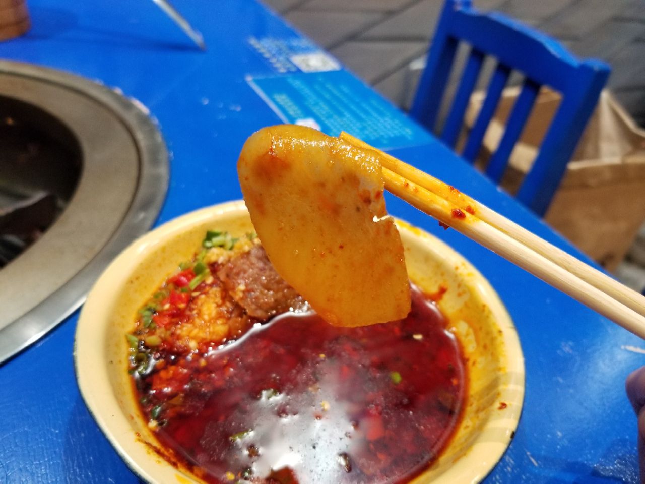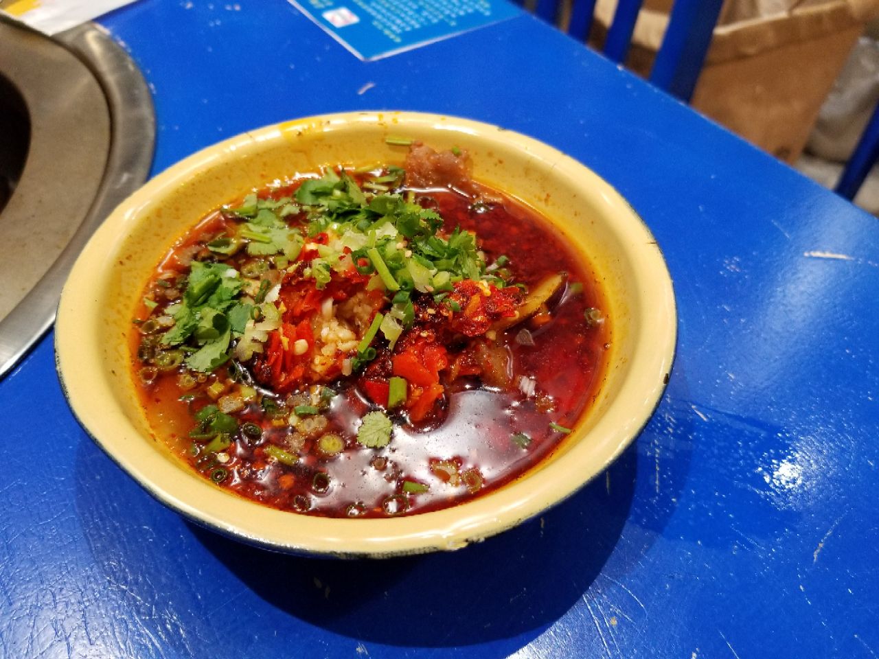 魔都+成都,Mix&Match 2018-12-12 感谢大众点评的霸王餐券,好像是自己拼图拼到的吧,代金券99米 |路边嫩牛肉^26米,在冒菜熟食里!艾小米看了半天,感觉熟食,联想到上海人说的熟食,应该可以吧!结果被告知,这个是现做的!现做的熟食?回答,是冒菜!好吧,越来越听不懂的艾小米!上桌,惊掉了艾小米的下巴,一碗辣椒酱……费力弄干净,试了试牛肉片,很嫩,不过有种嫩肉粉的感觉,然后就没有然后了,因为除了辣还是辣,没有其他米道了! 临走顺手讨了一瓶神器带回家玩,第一次在火锅店看到这么贴心的小宝贝 嘉欣姐姐的旧照,是贴在了洗手间的门后,嗯,嘉欣姐姐可是艾小米的女神昂又美又有手段