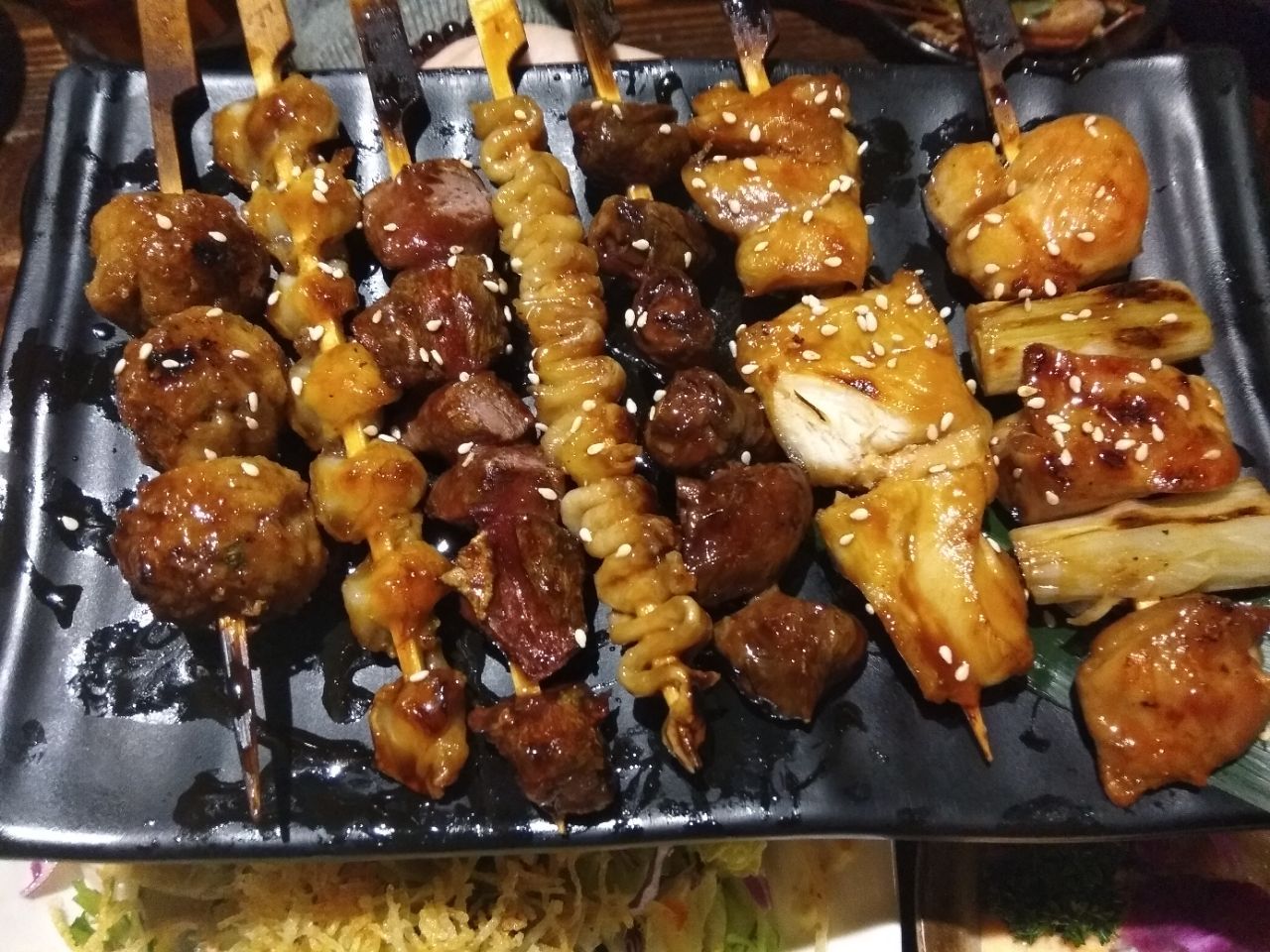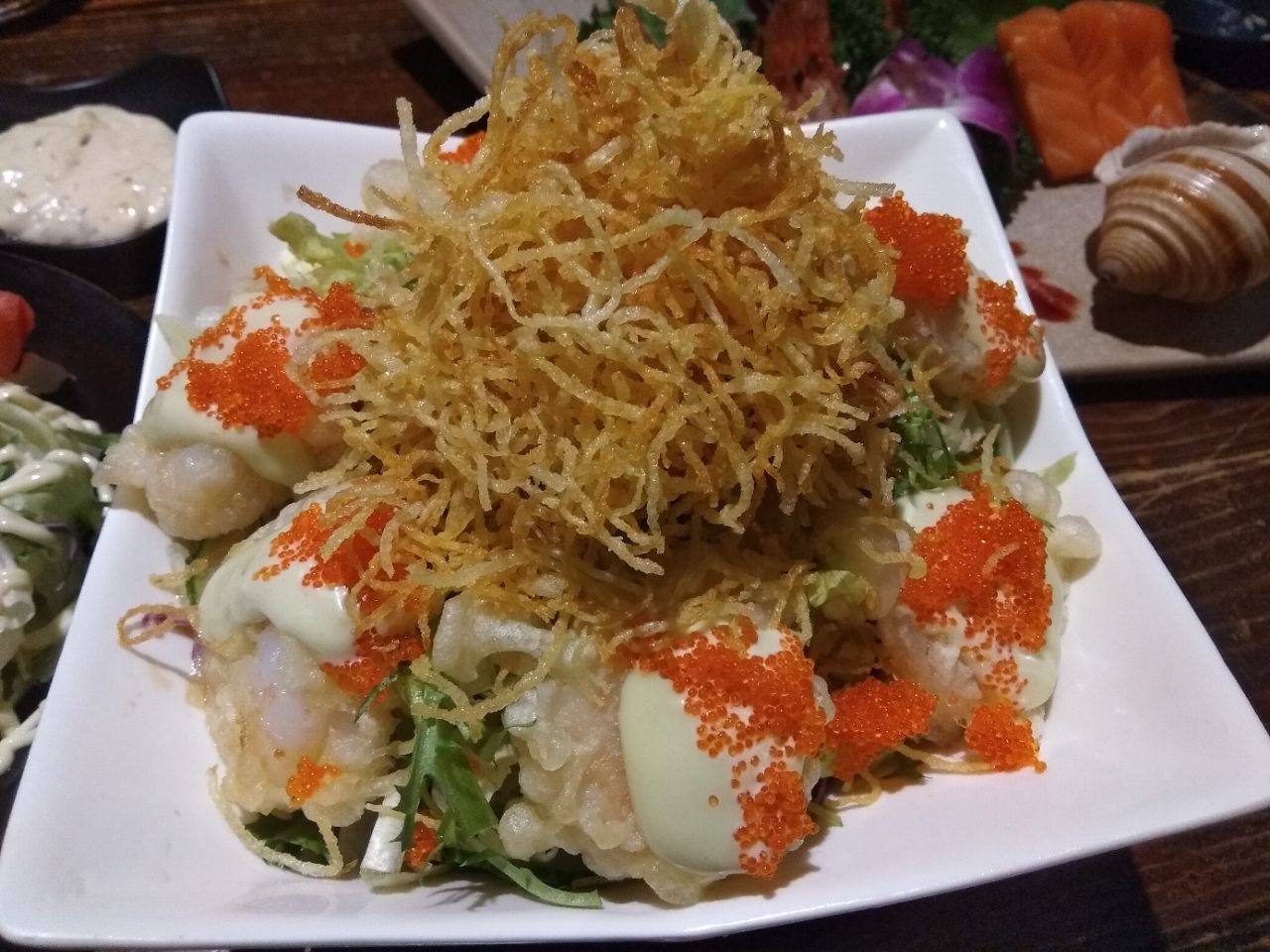 奥城有两家山上下,一个居酒屋,一个烤肉店,一不小心就走错了,我们就在居酒屋吃的。 三点拼盘:甜虾,三文鱼,北极贝,经典的刺身拼盘,每种都爱吃[馋] 芥末鸡肝:淡淡的芥末味搭配鸡肝细腻的口感竟如此相配。 芥末虾球沙拉:做沙拉的虾球很大颗,特别喜欢上面点缀的炸土豆条。 豚骨拉面:溏心蛋和拉面都很好吃,猪肉肥瘦比例刚刚好。 串烧拼盘:各种鸡肉吃些很爽,想吃那个部位6都有,鸡心,鸡胗,鸡肉丸,鸡皮,鸡脆骨等等~ 甜品拼盘:最爱布朗尼,其他的也很好吃~ 胶原蛋白三文鱼锅:很少吃煮熟的的三文鱼,口感没有生吃的鲜美,可营养汤的味道也不错。 抹茶红豆:浓浓的抹茶里面还有甜甜的红豆,真材实料味道好~