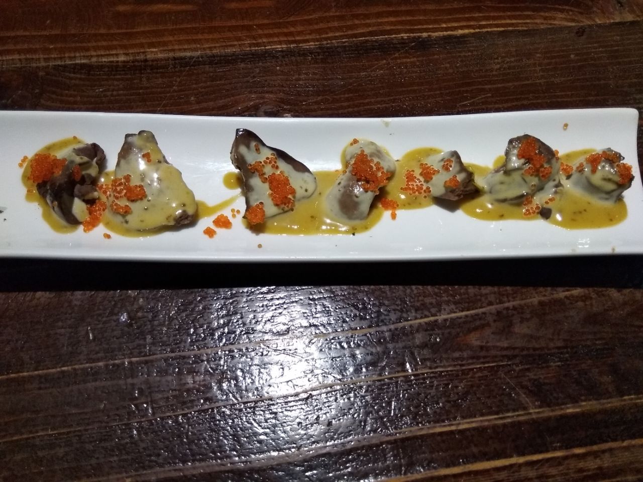 三文鱼,北极贝,经典的刺身拼盘,每种都爱吃[馋] 芥末鸡肝:淡淡的芥末味搭配鸡肝细腻的口感竟如此相配
