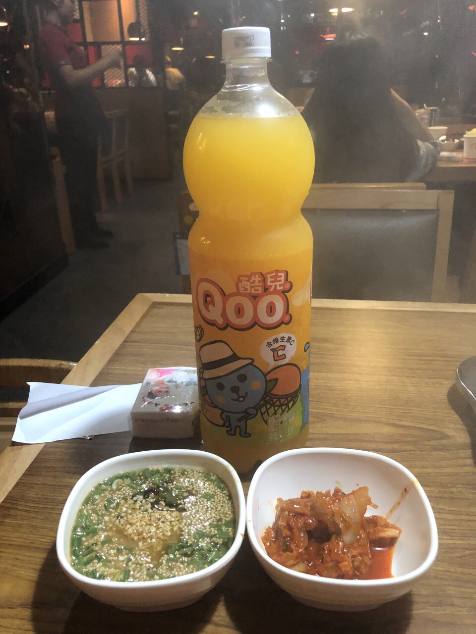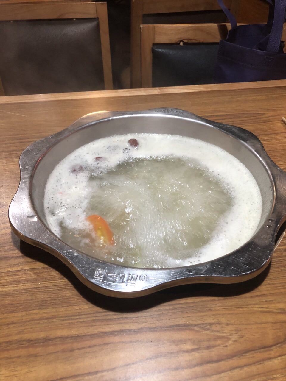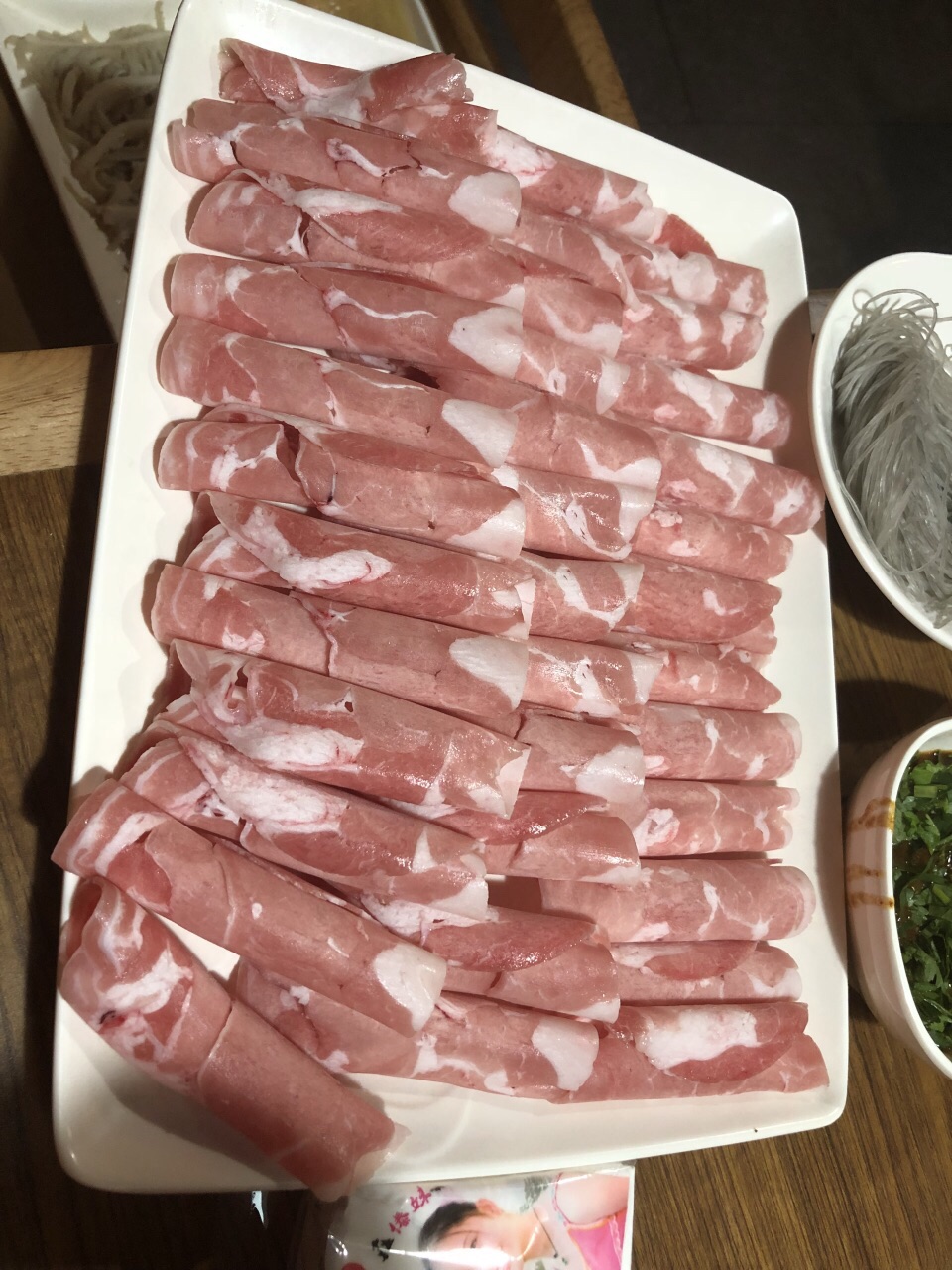 2018年10月8日,从手机店出来后,不知道去吃什么,就事先逛了会上海世贸,然后发现还是不知道吃什么,最后决定吃性价比比较高的傣妹(其实是便宜) 三鲜锅底,20元,因为我们是两个人吃,所以店家推荐小锅,在东西下锅前,我喝了一点,虽然看起来油油的,但是口感还是蛮清淡的,很适合我的口感。 牛肉贡丸,4.5元,6个,一开始就放在里面滚,滚到快要结束了,我才吃了一个,不知道是因为吃饱了,还是滚久了,感觉好油腻,但是肉还是蛮结实的,里面没有馅,我不喜欢吃有馅的丸子。 蒙古鲜嫩羔羊卷(大份),42元,上桌的分量很足[坏笑]肉很嫩,也许是因为我蘸料调的不好,感觉酱料有点厚。 经典肥牛(大份),38元,上桌的分量也很足,这让我很满意,肉也很嫩,口感不错。 酷儿(1.5L),12元,饮料是点的,他们家除了蘸料是自助的,饮料不是自助的。本来当初选的是10元的雪碧(2L),后来被告知没有货,带气的(可乐,雪碧,美年达)都没有货,只有酷儿和其他[快哭了] 安心牛百叶,22元,那灰色应该就是牛百叶了吧,量非常少,而且切的很细碎,放进锅里,还不一定捞的到。 最喜欢的还是自助调料台上的辣白菜(韩国泡菜)了,尤其是叶子部分的,特好吃,虽然很辣,但是口感很爽。