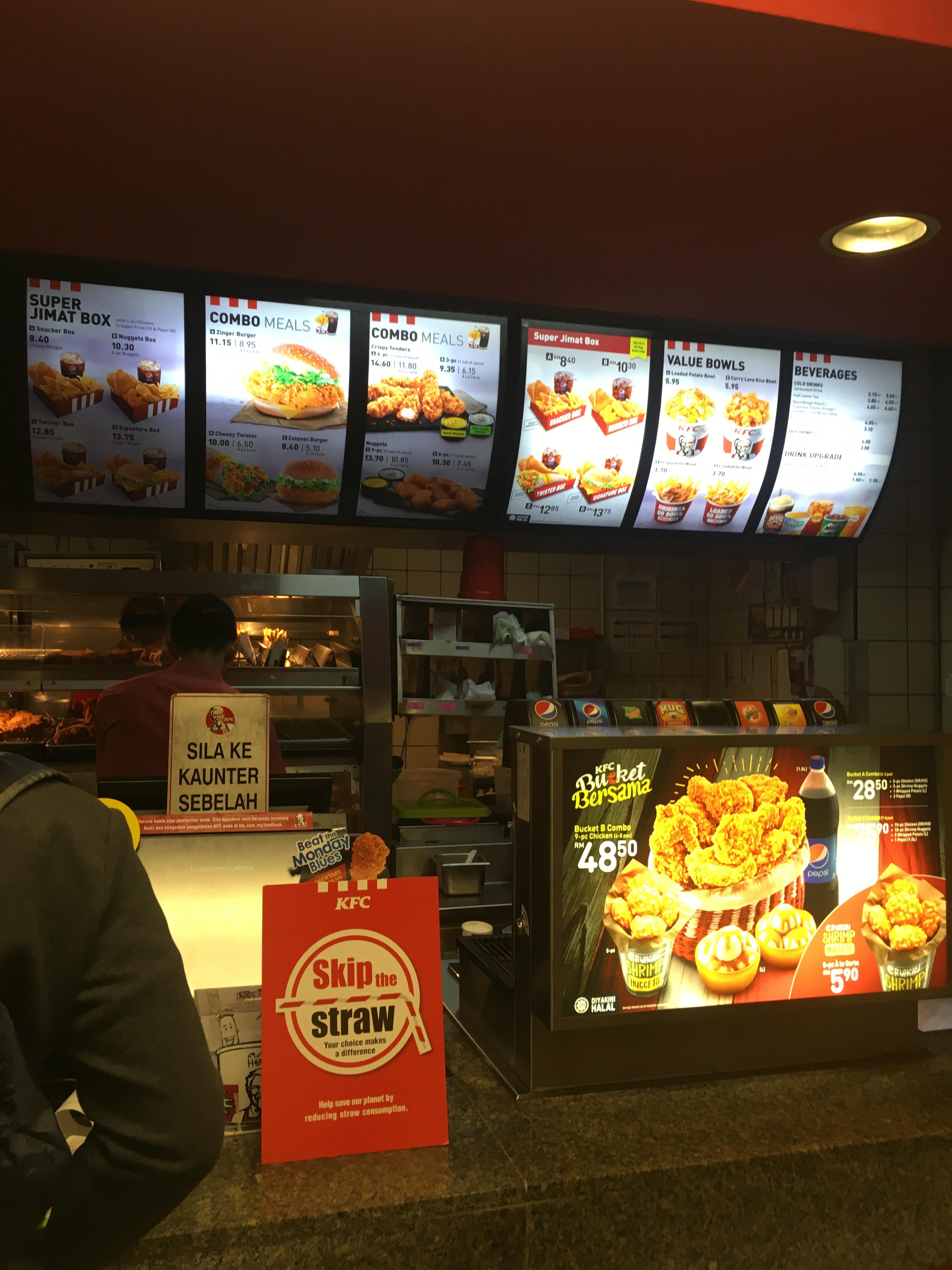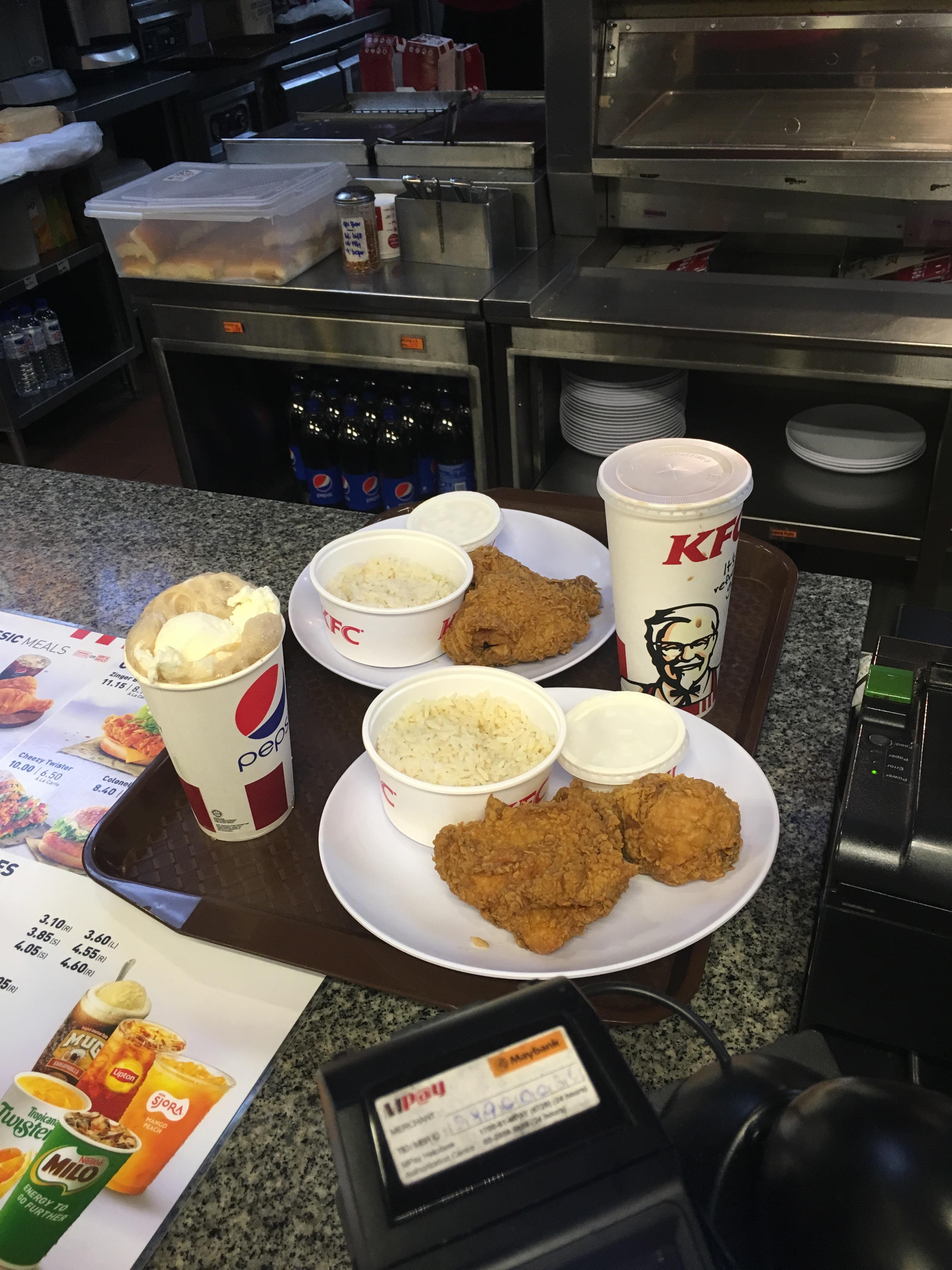 吉隆坡的肯德基有提供白饭,但是白饭配鸡感觉很干啊。生意很好,很晚了还有很多人在排队,可以刷信用卡。