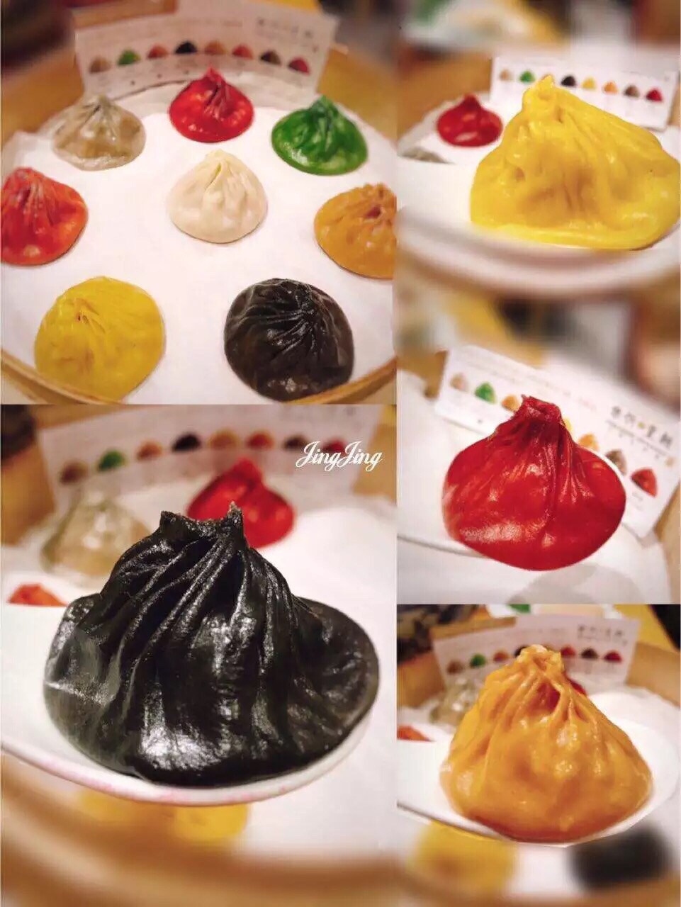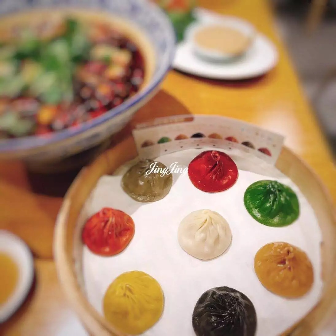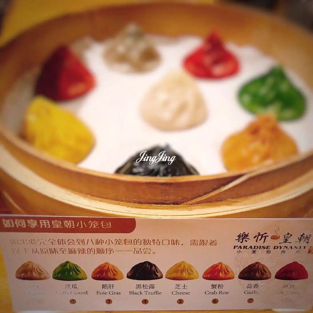...品尝,原味→丝瓜→鹅肝→黑松露→芝士→蟹粉→蒜香→麻辣,这样一圈下来才能体会到八色小笼的精华~