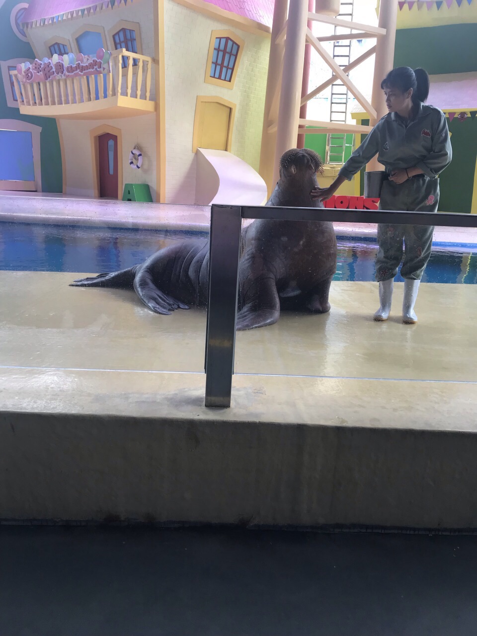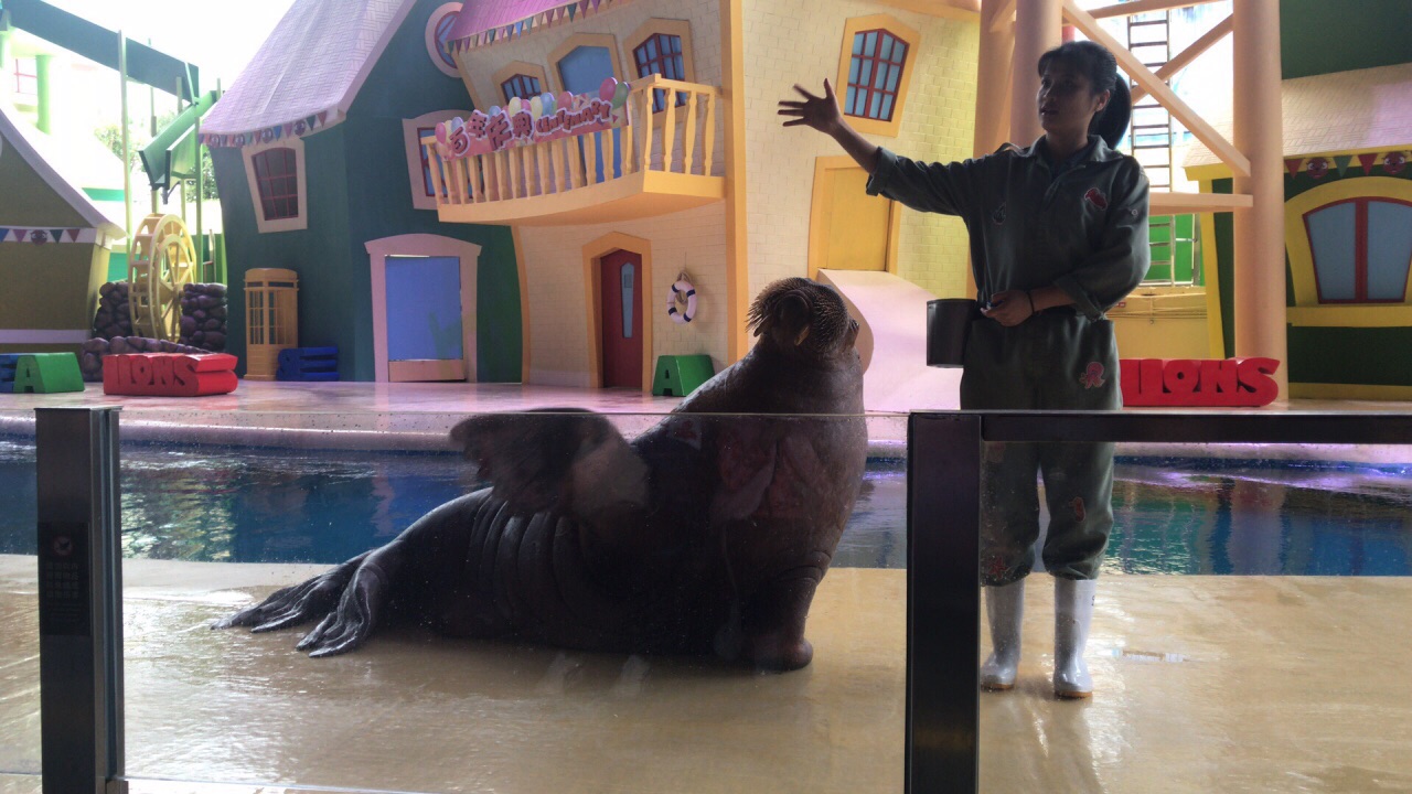 网友2018-12-17很值得去,比北京海洋馆演得好很多,时间大概是二十分钟左右,人比较多,去得早可以坐得比较靠前,一...很值得去,比北京海洋馆演得好很多,时间大概是二十分钟左右,人比较多,去得早可以坐得比较靠前,一天有气场表演,可以自己分配时间来看,孩子非常喜欢