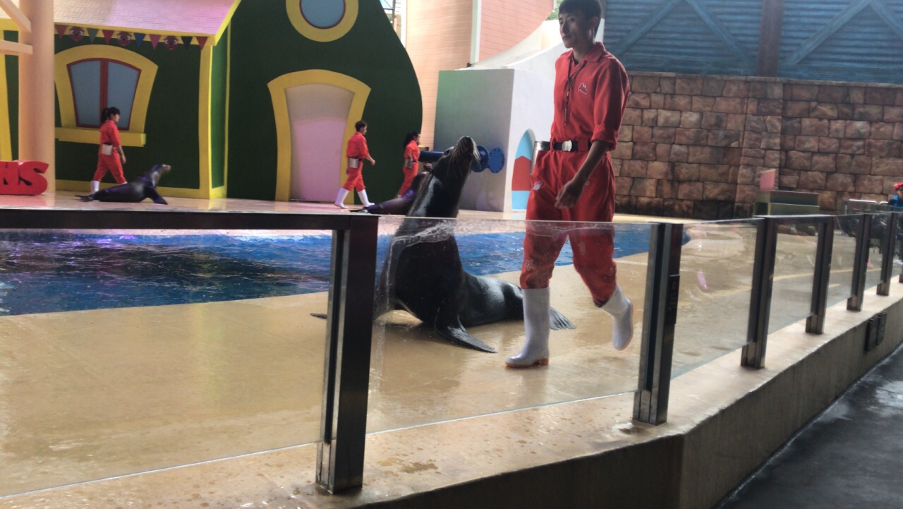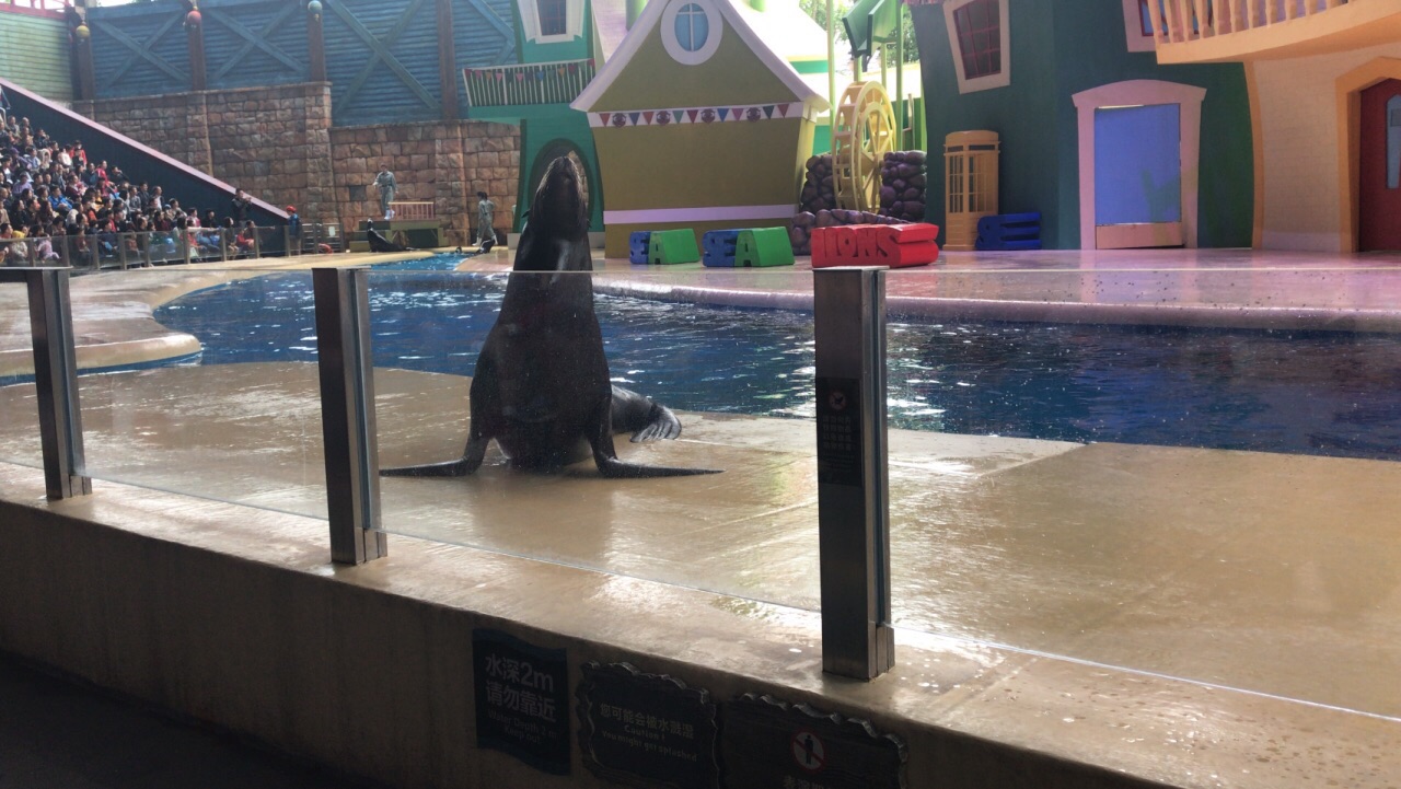 很值得去,比北京海洋馆演得好很多,时间大概是二十分钟左右,人比较多,去得早可以坐得比较靠前,一...很值得去,比北京海洋馆演得好很多,时间大概是二十分钟左右,人比较多,去得早可以坐得比较靠前,一天有气场表演,可以自己分配时间来看,孩子非常喜欢
