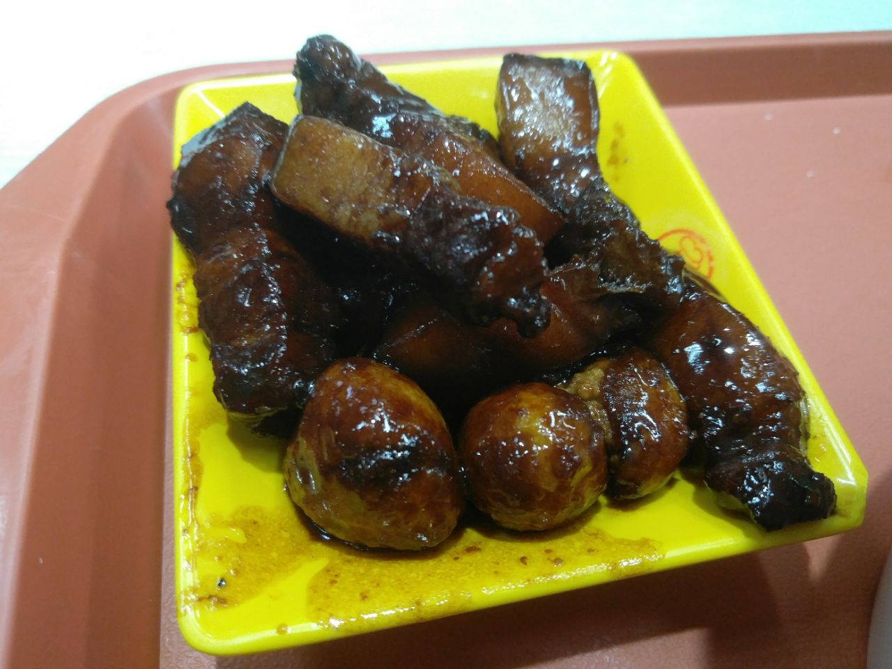 就在农工商门口的美食街里,可以说环境还是很不错的,地方够大,可想而知中午生意有多好了。 走的也是大食堂的路线,他家菜肴主要就是比较重口味,还算好有粥可以搭配。 油焖茄子 做的还不错,茄子很酥嫩,带一点辣辣的哦。 红烧肉 炖的很入味,还有鹌鹑蛋很不错哦。就是肉有点柴了 最后来碗赤豆粥,完美。还是值得一去的