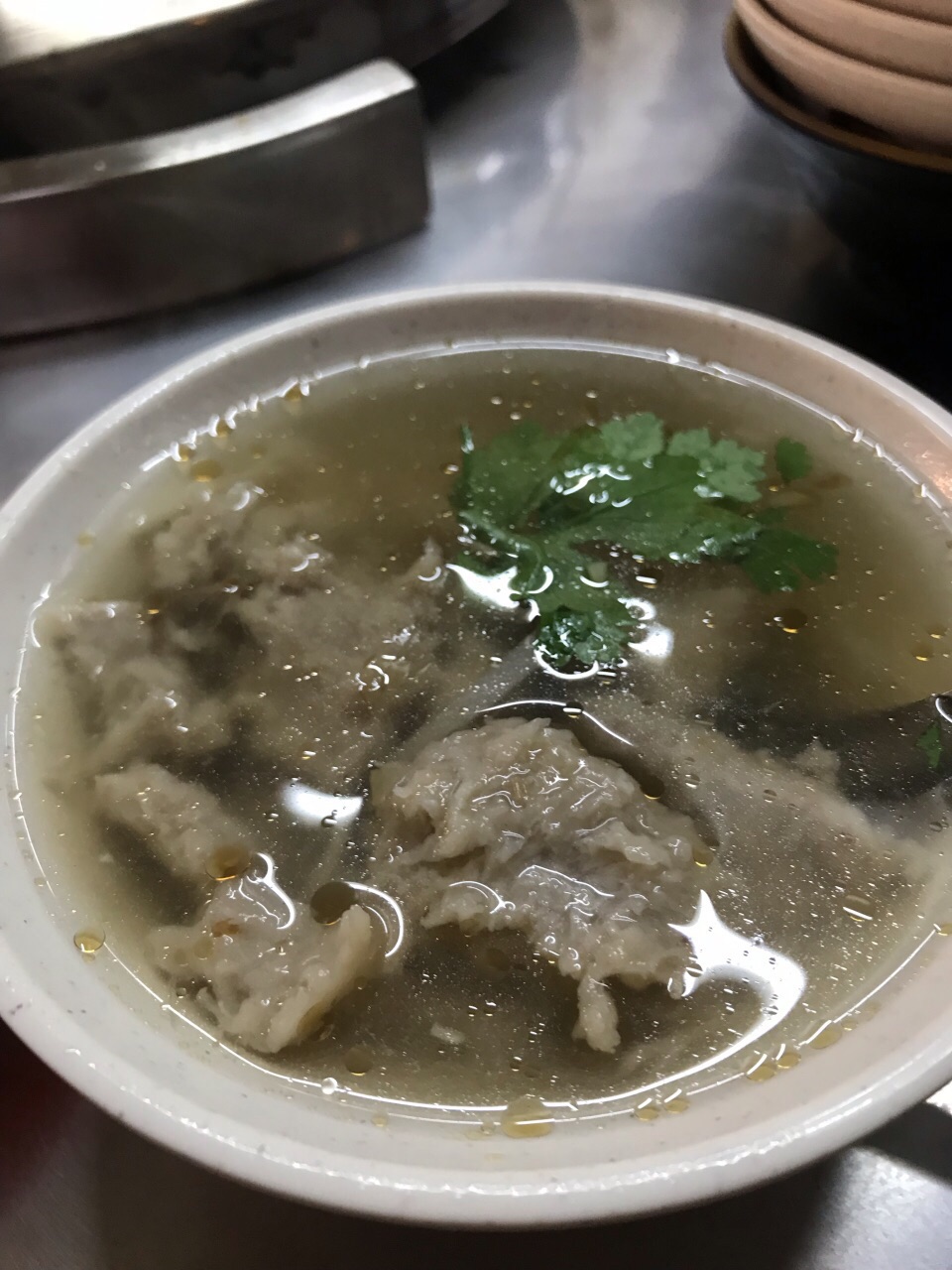基隆老店美食,看店里几十年就专攻两个料理。简朴的条椅坐下,正对着大锅,抬头就看到掌勺大婶,感觉很接地区。小碗里饭盛到堆出个小坡头,油汪汪的很提食欲,肉片汤里肉像是浮云一样造型各异,然而鲜嫩是每一片肉的标志。