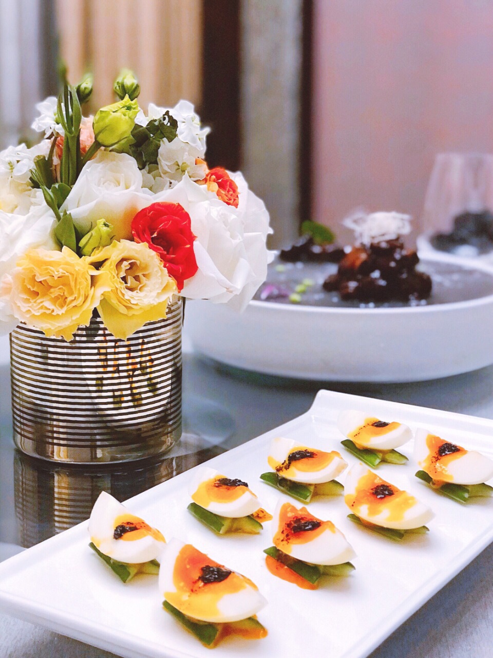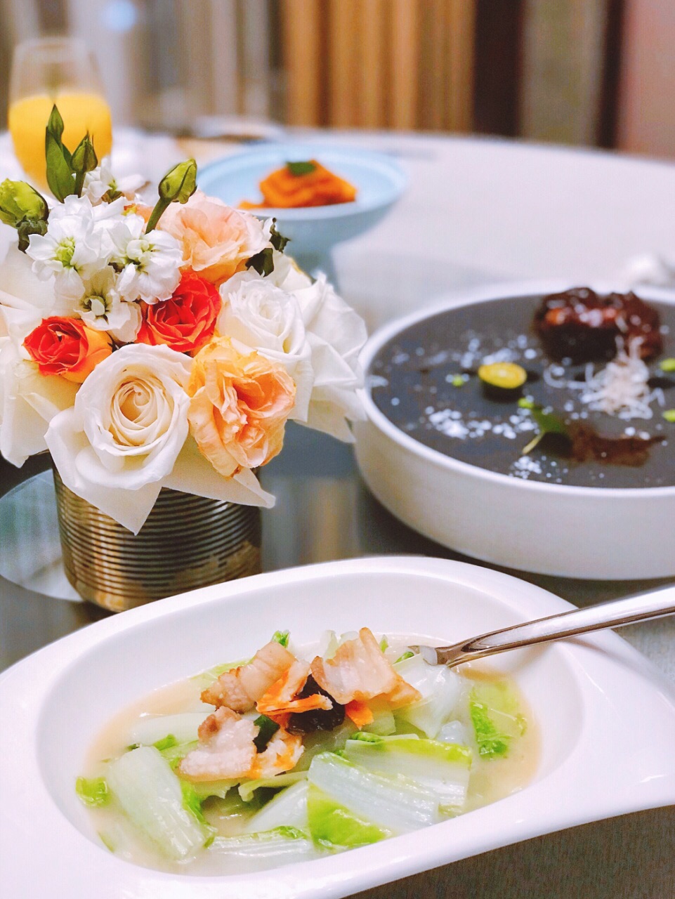 我是个十足的酒店控 平时除了爱住酒店外 更喜欢吃酒店的自助餐和中餐 之前来吃过他们家的大闸蟹自助餐 这次家人聚餐也毫不犹豫的选择了这里 糖醋小排 仙气十足的一道经典本帮菜 酱汁浓郁 味道酸甜 肉质鲜嫩不柴 作为一道开胃菜真的是非常适合了 黑松露糖心蛋 摆盘精致 糖心蛋吃上去的口感很嫩 入口满是浓郁的黑松露味 味道一流 干煎带鱼 这个带鱼是从台州过来的 是目前为止我吃到过的最好吃的带鱼了 外皮色泽金黄 外脆里嫩 鲳鱼腊味煲仔饭 这个是按位上的 看着挺小巧可爱的 最上面放了一块厚实的鲳鱼 米饭口感软硬适中 里面还放有腊肉 鲜香味美 一碗瞬间就见底