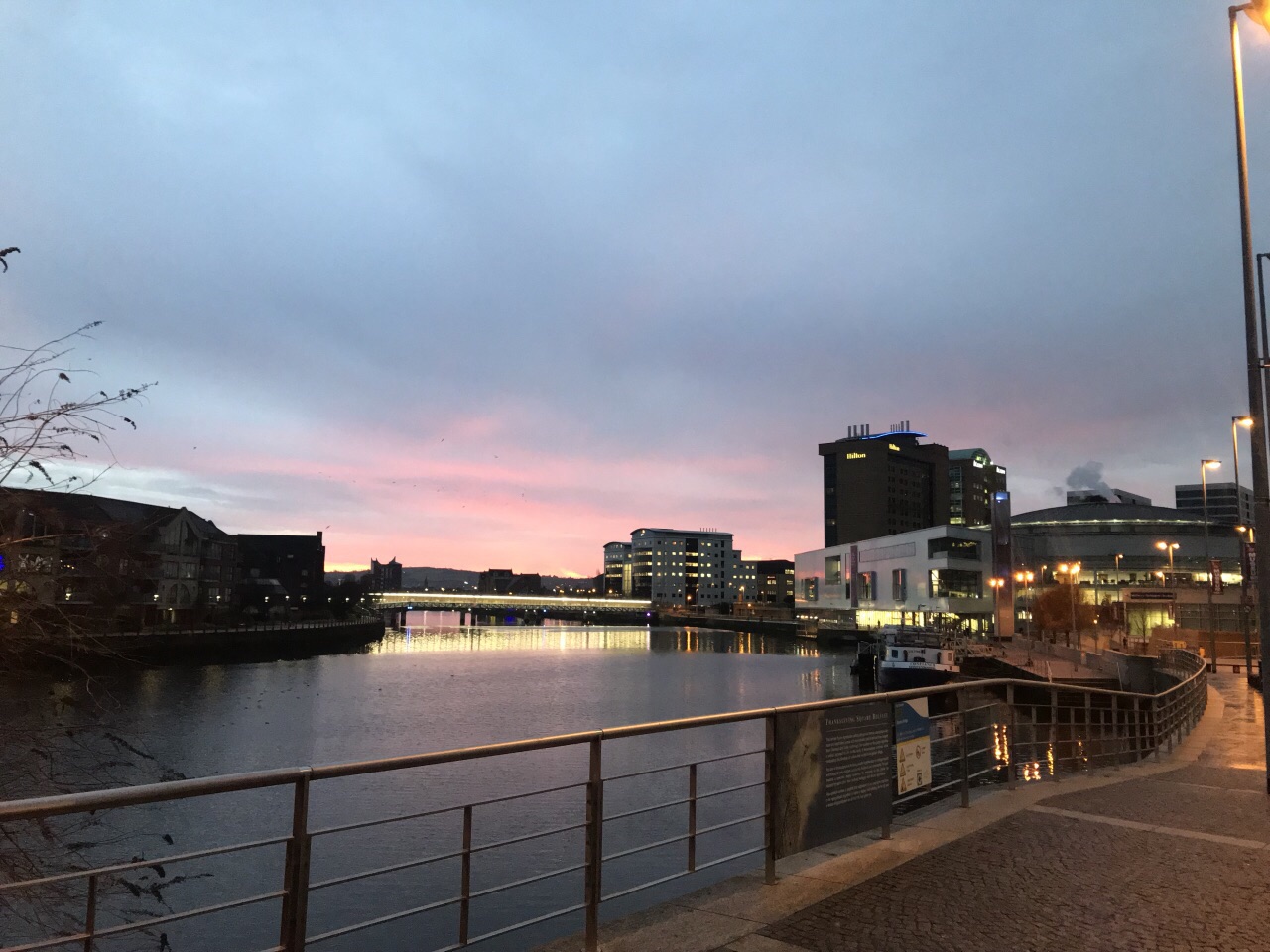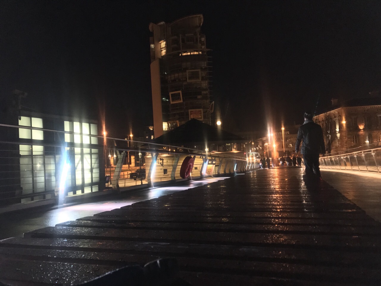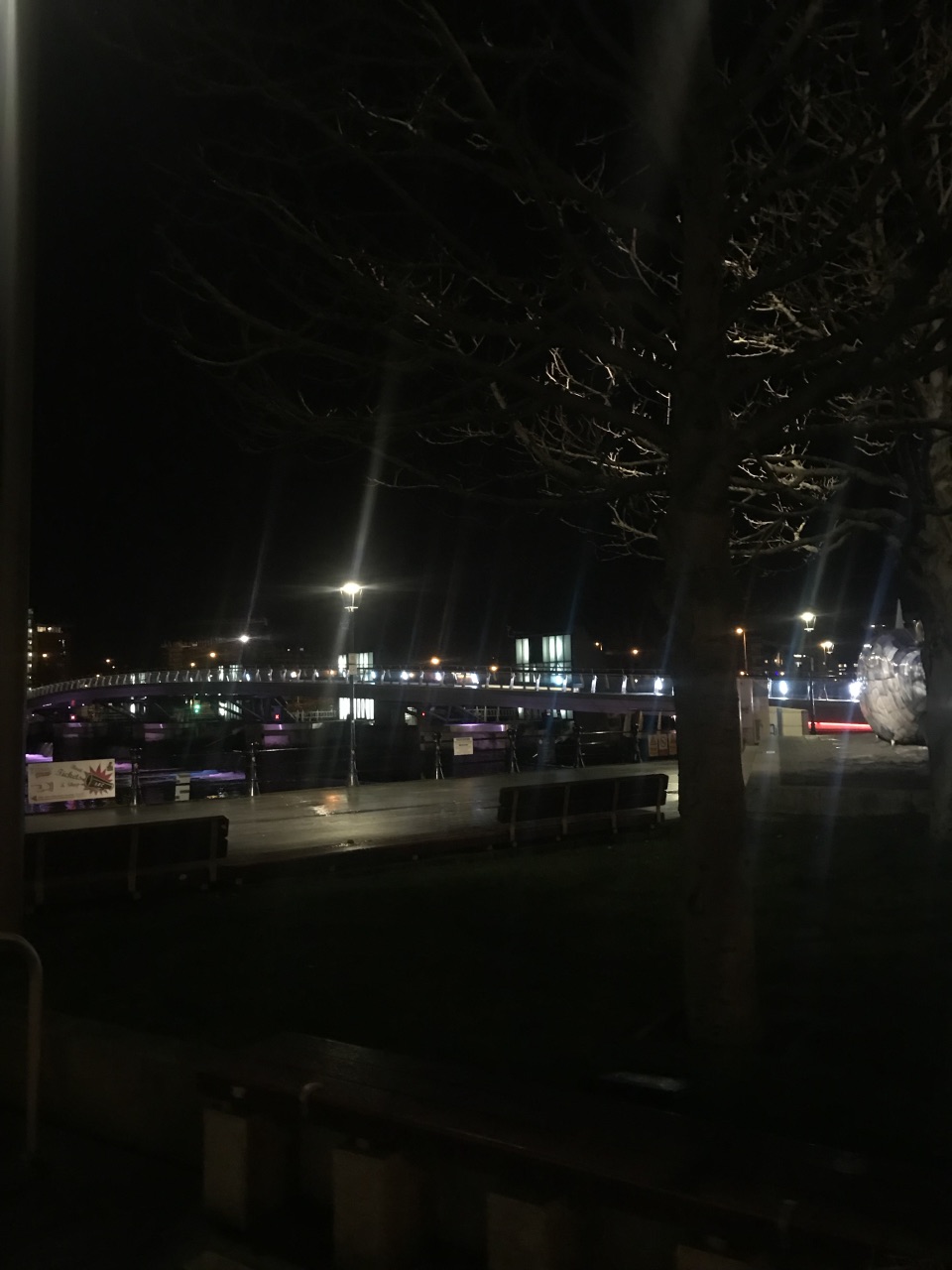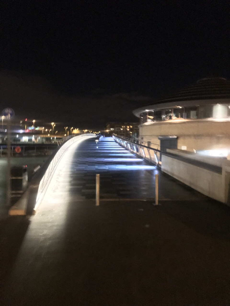 贝尔法斯特的港口区内有很多各式各样的桥,而最具特色的步行桥连接着钟塔和对面的河岸,一到晚上灯光打起并且可以变换各式各样的颜色,虽然这类样子的桥在国内很常见,但是在相对景观灯光比较昏暗的城市来说却好似光点一般与众不同