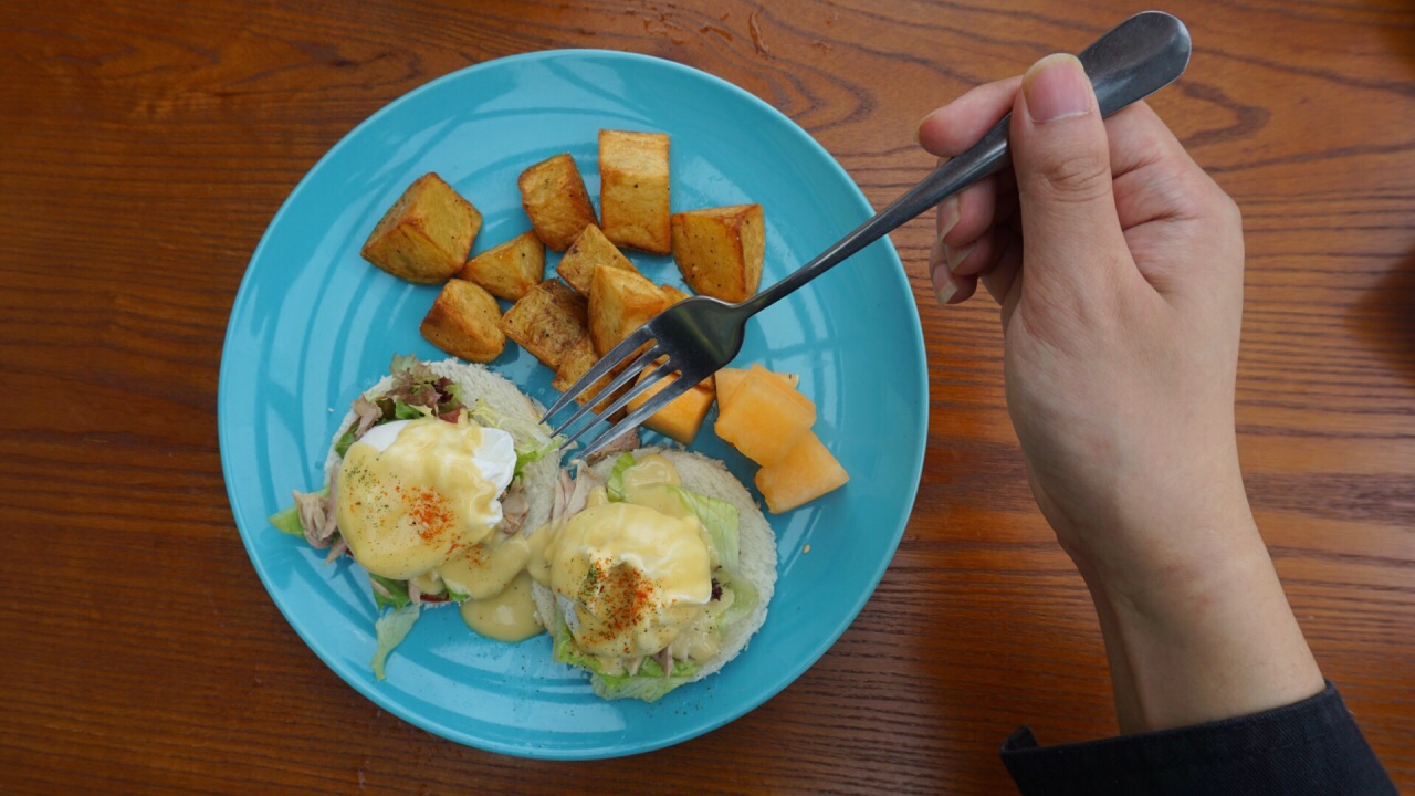 金枪鱼班尼迪蛋,42元,色彩纷呈,班尼迪蛋流黄,超级诱人,炸薯块很好吃