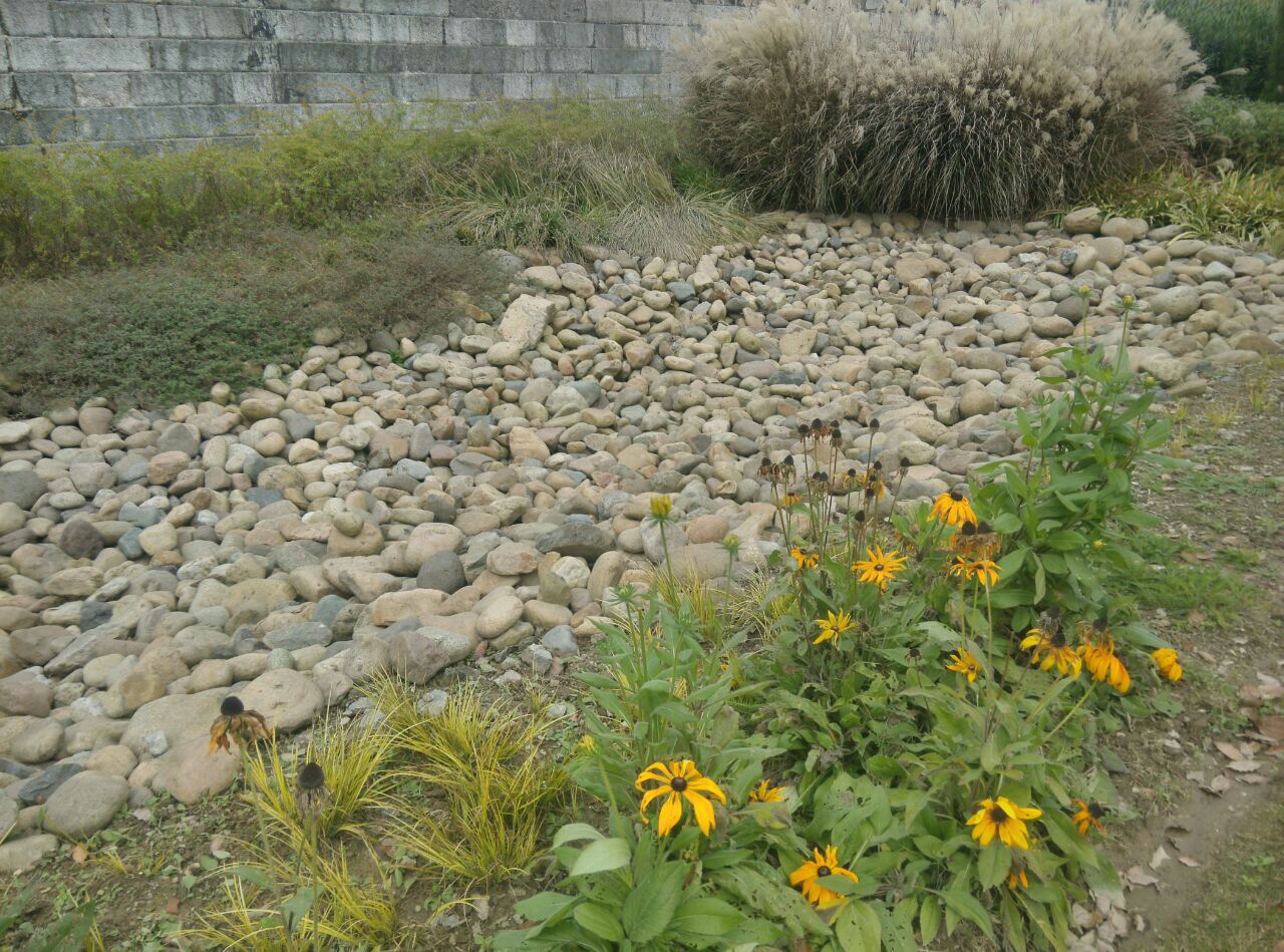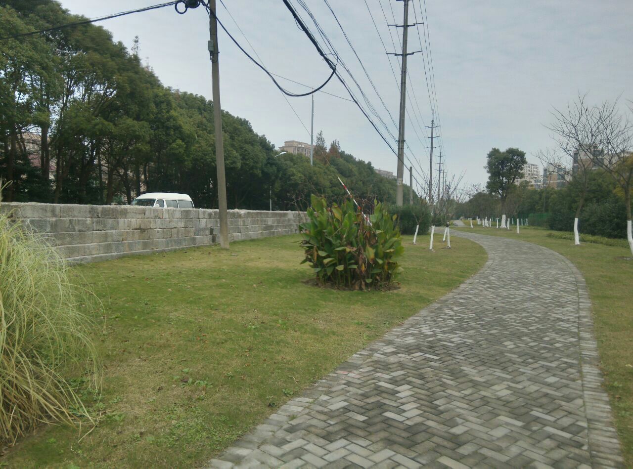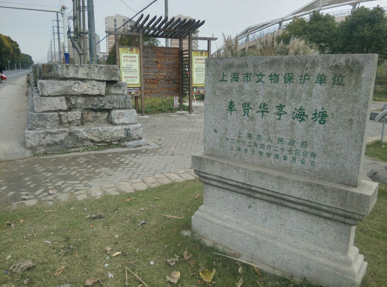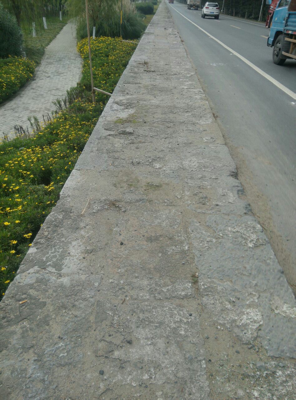 那是雍正年间建造的海塘,距今三百多年了。海塘依旧海岸已经在此处三公里外了,显然已经没有任何功能了,所以现在看起来就像一道石墙延绵近十公里。我们现在看到的图片是拍摄自奉柘公路海湾路口的一段纪念公园。此处遗迹沿奉柘公路和上海应用技术大学围墙间的狭长地带展开,围墙内300年前的海面现在已经是一所高等学府了。