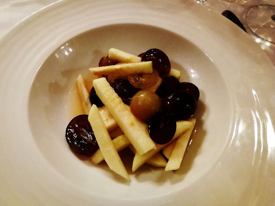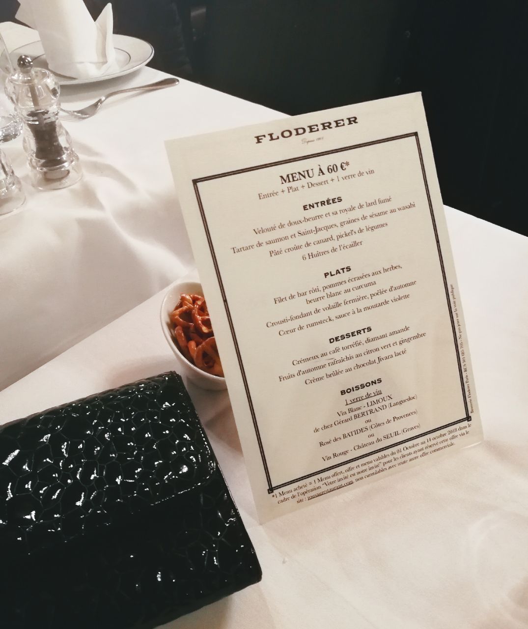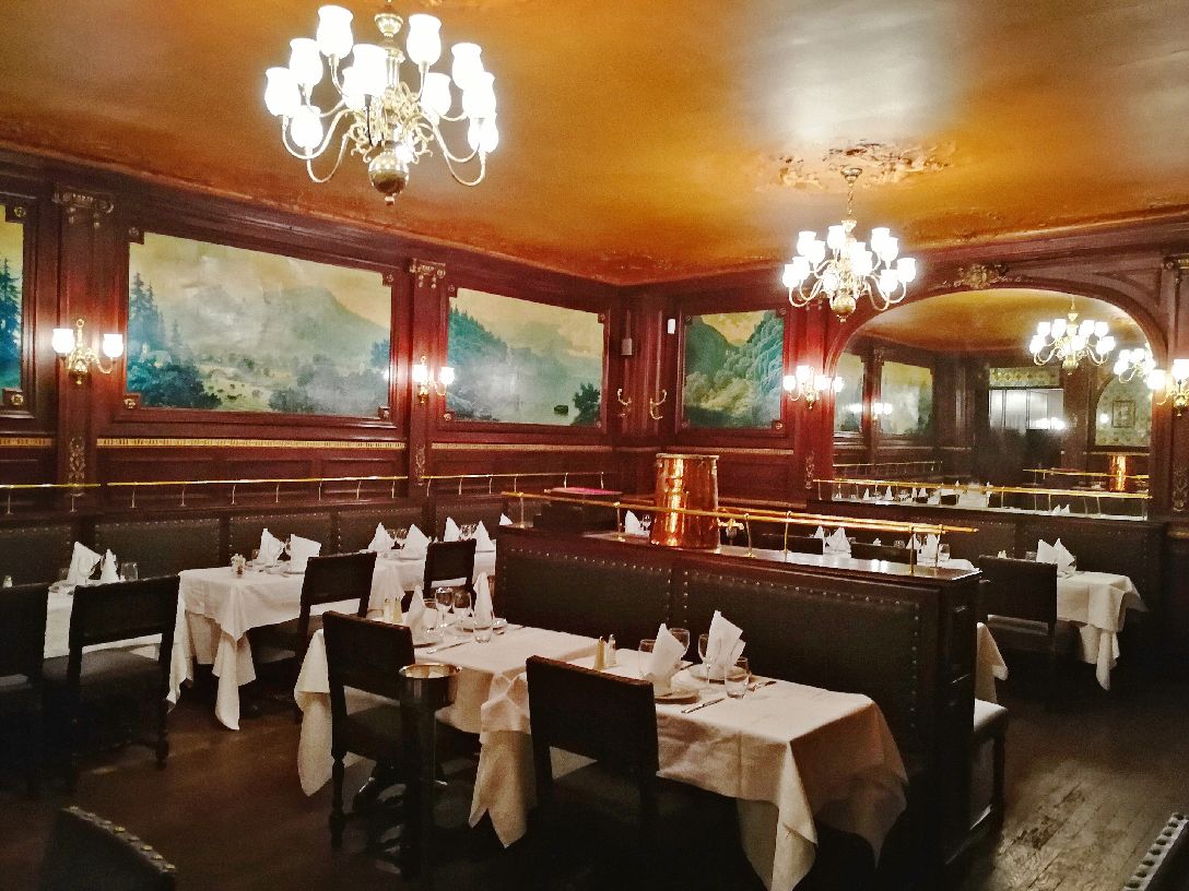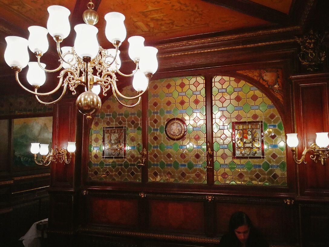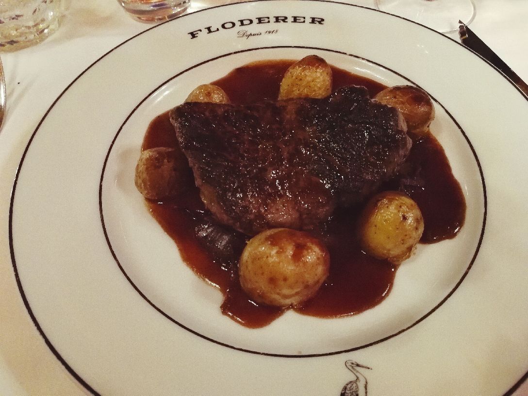 Brasserie FLO餐厅是Floderer先生于1901年开始经营的。作为最早的一家,它也是现在福楼古风系列餐厅的头牌。福楼餐饮集团现在已经把店开到了世界各地,北京也有一家分店。 在这个发家起源地,能看到店内的装饰都一直保留着十九世纪末、二十世纪初的影子。彩窗,吊灯,棕色的木制家具都别有风味,墙上甚至还有当年穆夏设计的广告海报。 食物方面,餐厅主要经营的是法国东北菜系,阿尔萨斯的饮食偏平民,也就是我们在法国经常能吃到的一些家常菜。 虽然法国东北菜本来就不能期待它很精致,但讲真这家餐厅价格也不是很便宜。服务还算热情,可能因为装饰太美,名气很大,所以性价比就低了。口味只能说一般,比如鱼的火候没有把握太好,如果便宜点也还能给个好分数。但这家最让我惊讶的是他们的甜点,法式焦糖布丁还不错,但我们点的另一份美其名曰“秋季水果拼盘”,居然是一盘苹果和葡萄随便切切就端上来了……如果厨师出来,估计朋友会恨不得把盘子甩他脸上……为了这个总分我只给三分。