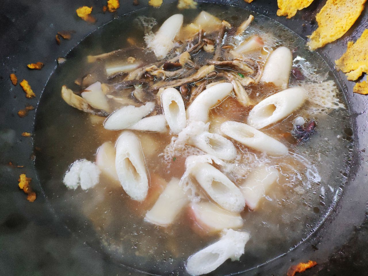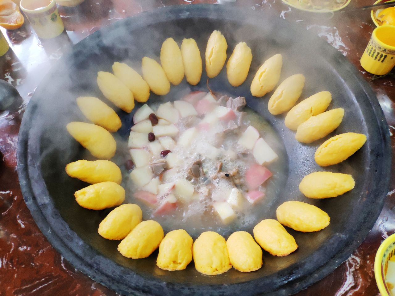 还有东北特色的玉米面锅贴,口感松软,趁热吃最好。PS:铁锅需要提前预定