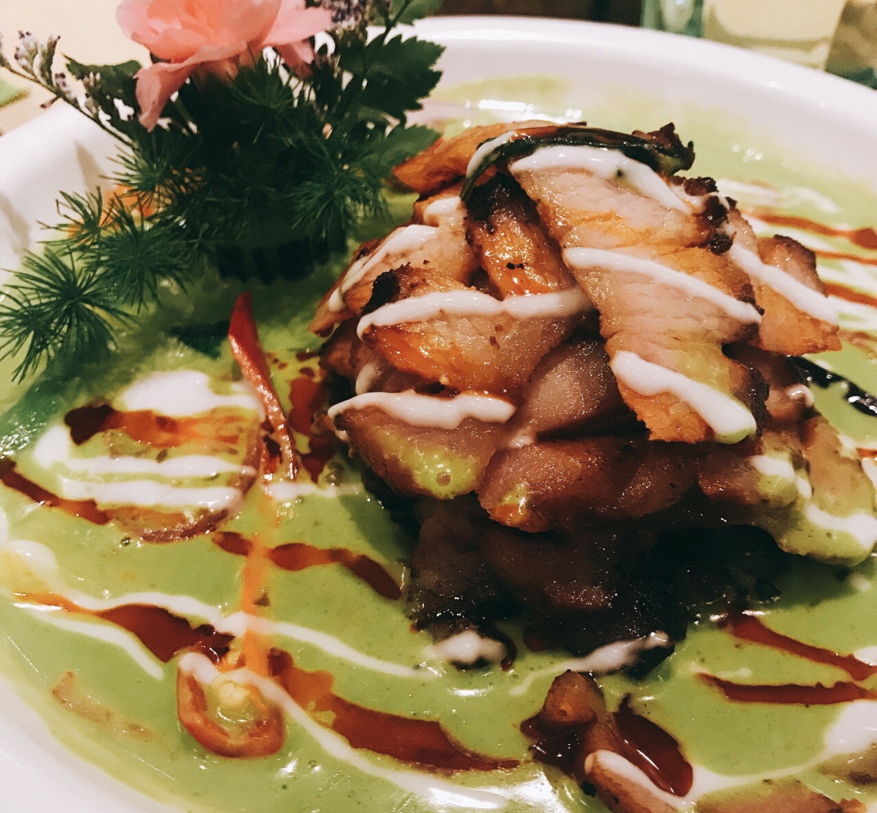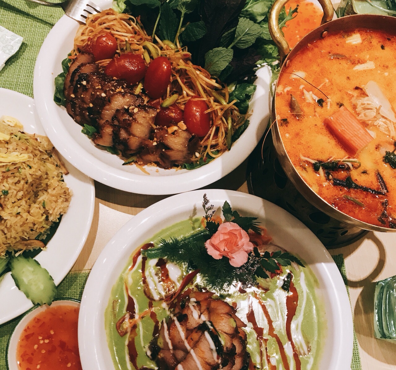 ...泰国菜,蛮好吃的,但是质量也是比较粗糙哈,肉的用料不是那么好,不过咖喱这种菜,味道好配饭就行了老城青年旅馆楼下的餐厅,作的就是泰国菜,蛮好吃的,但是质量也是比较粗糙哈,肉的用料不是那么好,不过咖喱这种菜,味道好配饭就行了