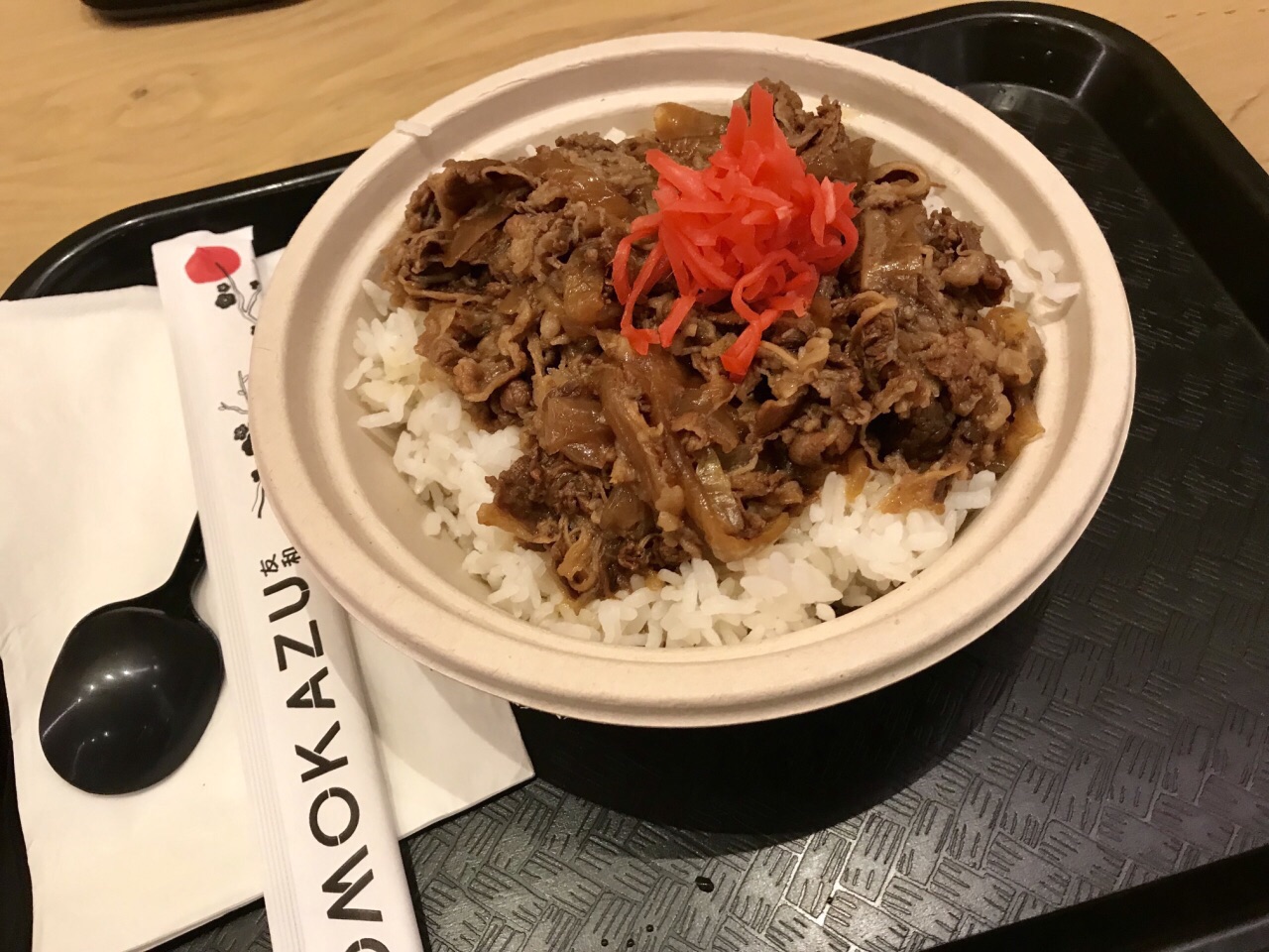 在旧金山机场转机能找到一家口味可以和味千拉面媲美的日料店实在很开心,那种冷冷的三明治之类实在不想再吃了。点单时讲的英文,后来发现店员互相聊天时的口音似乎是来自广东地区⋯⋯点了一份牛肉盖浇饭和一碗味噌汤,一共17美金左右。味道很不错,牛肉的味道和国内味千拉面一样。
