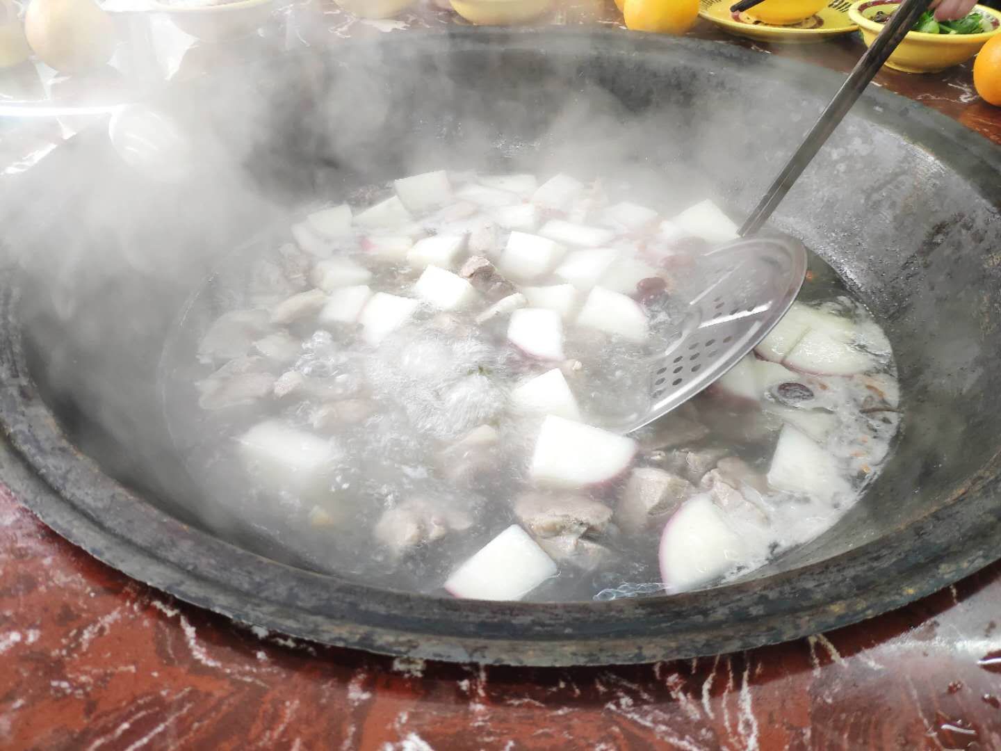 需要提前预定,大铁锅各种食材一 锅烩,味道却出奇的美味