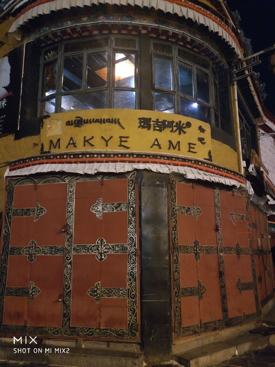 点了一壶甜茶(22元)和一块酸奶蛋糕(30元),酸奶蛋糕好酸哦(´-ω-`)不过挺好吃。甜茶一壶起卖,一壶有一个电热水壶那么大,够4个人喝了。味道和奶茶一个味儿。屋里放的音乐特别好听,可惜搜不到,都是藏文的。服务员小妹妹很友善呀,我问她可以拍照不她说当然可以呀还可以拍她~我一个人点了一壶茶喝不完问可不可以带走,她说不能还和我说对不起。二楼比较暖和,还可以看见八廓街,再往上一层是没有窗户的像帐篷似的,有点小冷ಥ_ಥ