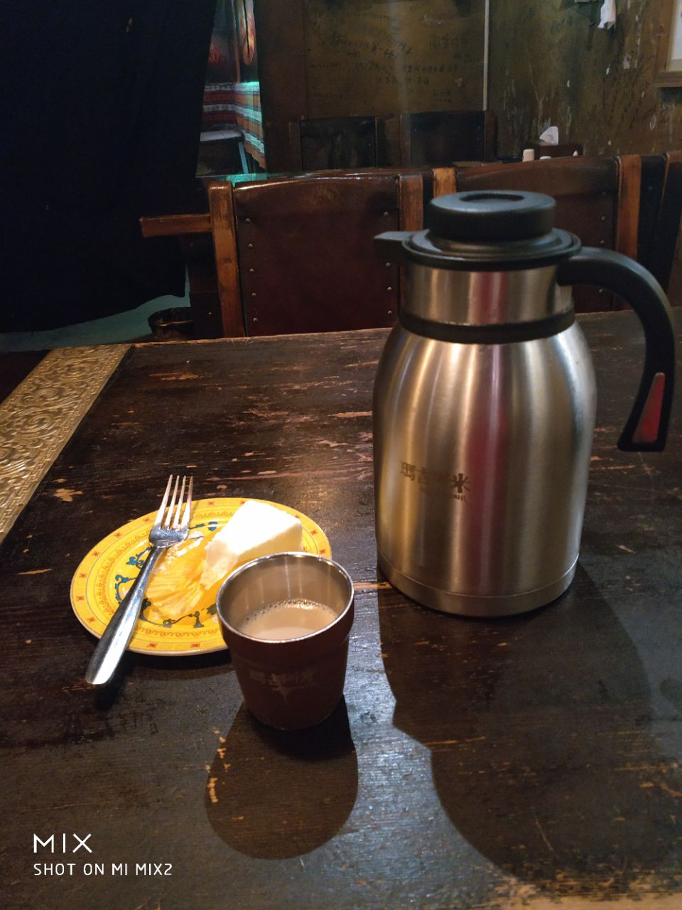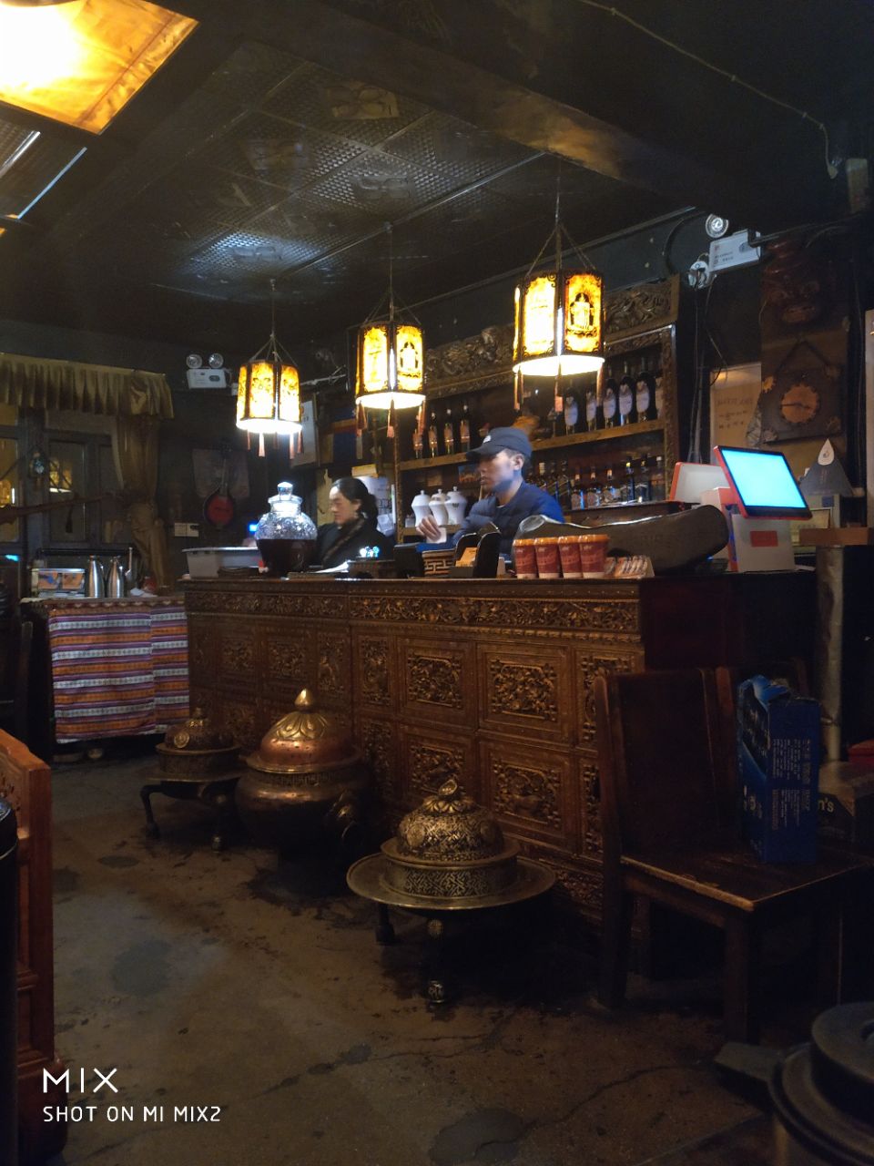 屋里放的音乐特别好听,可惜搜不到,都是藏文的。-ω-`)不过挺好吃。味道和奶茶一个味儿