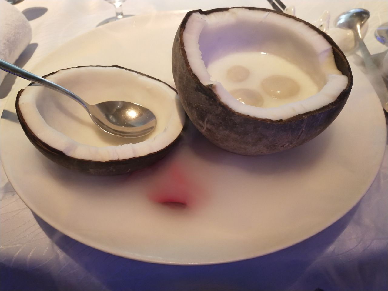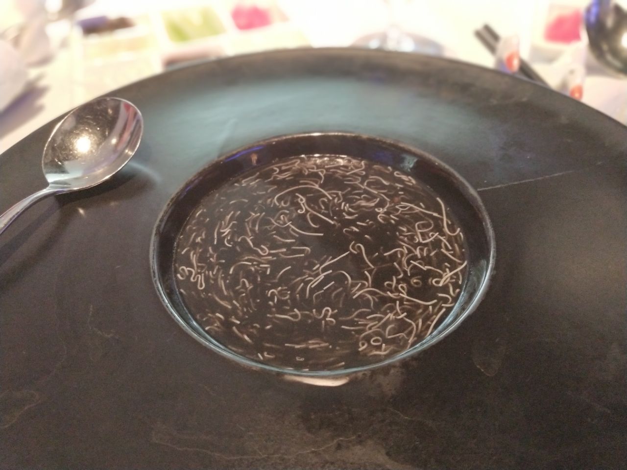 今天中午公司在这里定了聚餐。对于大董的菜品,服务总体上来说比较满意,而且对得起这个价位,所以就重点来说一下不满意的地方。 第一,我在最后一道椰汁汤圆里吃到了一个小纸,如图一。很显然,这种事情根本就不应该发生任何餐厅里,更何况是大董这样的米其林餐厅。如果今天我是自己来吃饭,我一定会投诉!!! 第二,今天在吃饭的过程中,最少听到了两三次非常大声的盘子相撞或者是盘子落在地上的声音,这种噪音会非常影响吃饭的心情,希望以后对服务员可以加强培训。