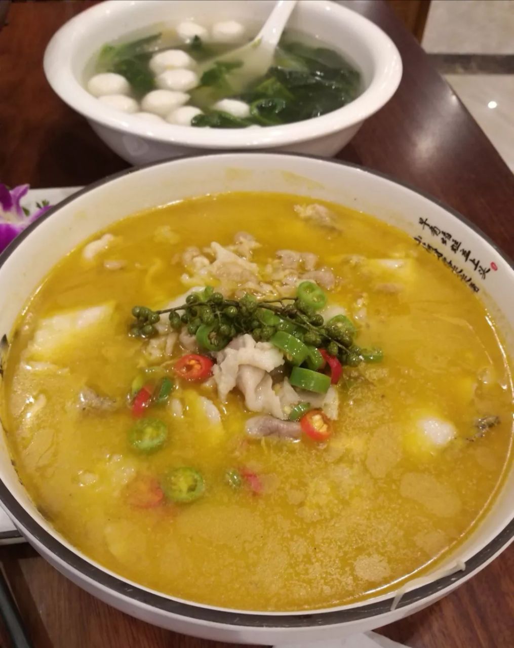 网友2018-12-22清淡的鱼圆汤,鱼圆真的好好吃,汤里配了菠菜非常爽口。楼下是散客,楼上是包间,环境很不错这家的黑椒牛肉粒是我的最爱,浓郁的黑椒味道,牛肉粒,又嫩又多汁。酸汤,辣了一点,不过适合口味。清淡的鱼圆汤,鱼圆真的好好吃,汤里配了菠菜非常爽口。楼下是散客,楼上是包间,环境很不错。