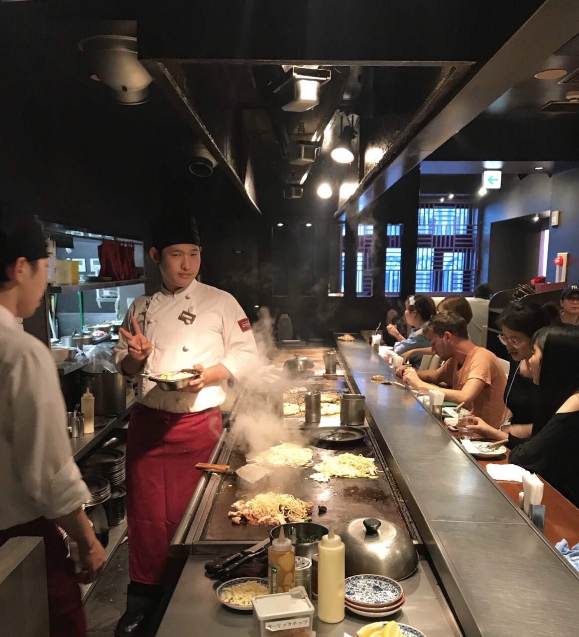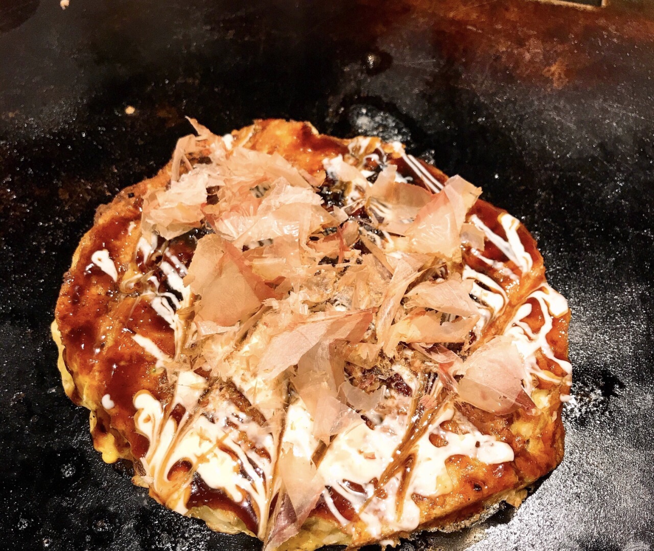 ...柴鱼片等自助完成,里面加了猪肉、牛肉、虾、章鱼等,内容非常丰富,豚平烧其实就是猪肉蛋卷,也好吃招牌大阪烧上了半成品后放在面前的铁板上再加工,服务员当场淋上烧烤酱和美乃滋,然后加上柴鱼片等自助完成,里面加了猪肉、牛肉、虾、章鱼等,内容非常丰富,豚平烧其实就是猪肉蛋卷,也好吃!