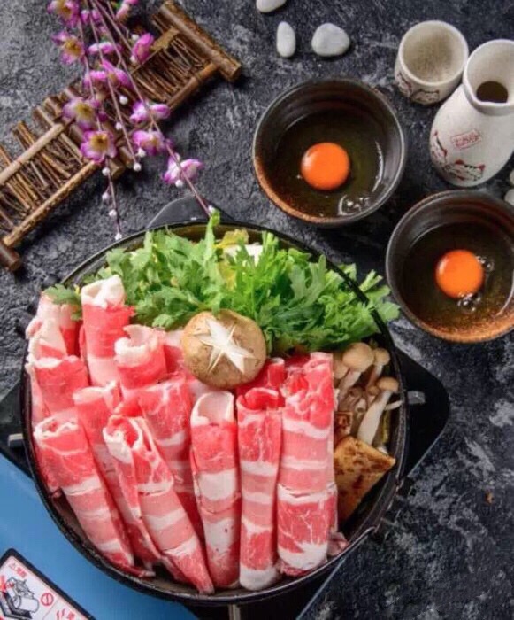 「牛肉寿喜锅」寿喜锅真的很棒,味道把握得刚刚好,菜品也都超新鲜,蛋也很赞,看配色就知道了