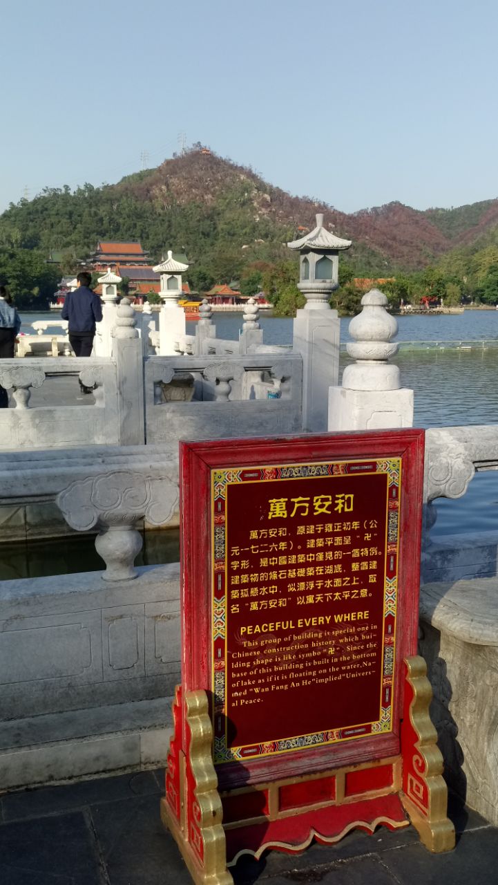 万方安和的牌子用显眼的红色立着,特别有中国的喜色,字迹用金色,在阳光的照射下显得非常威力,不错非常优美的自然景观,虽然是仿照的,但是很逼真哦,值得一看。万方安和的牌子用显眼的红色立着,特别有中国的喜色,字迹用金色,在阳光的照射下显得非常威力,不错。