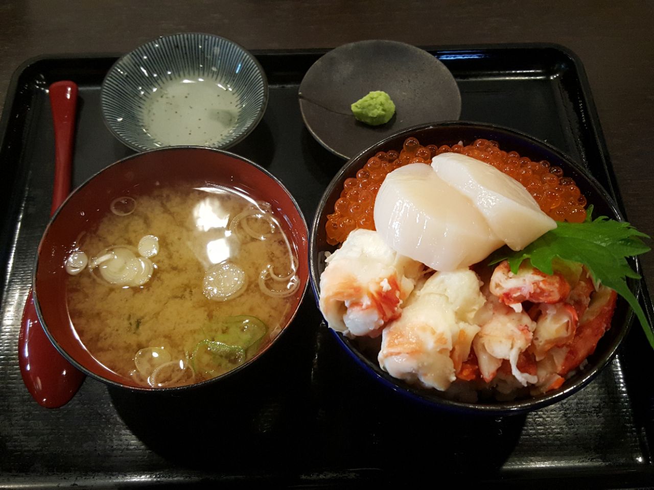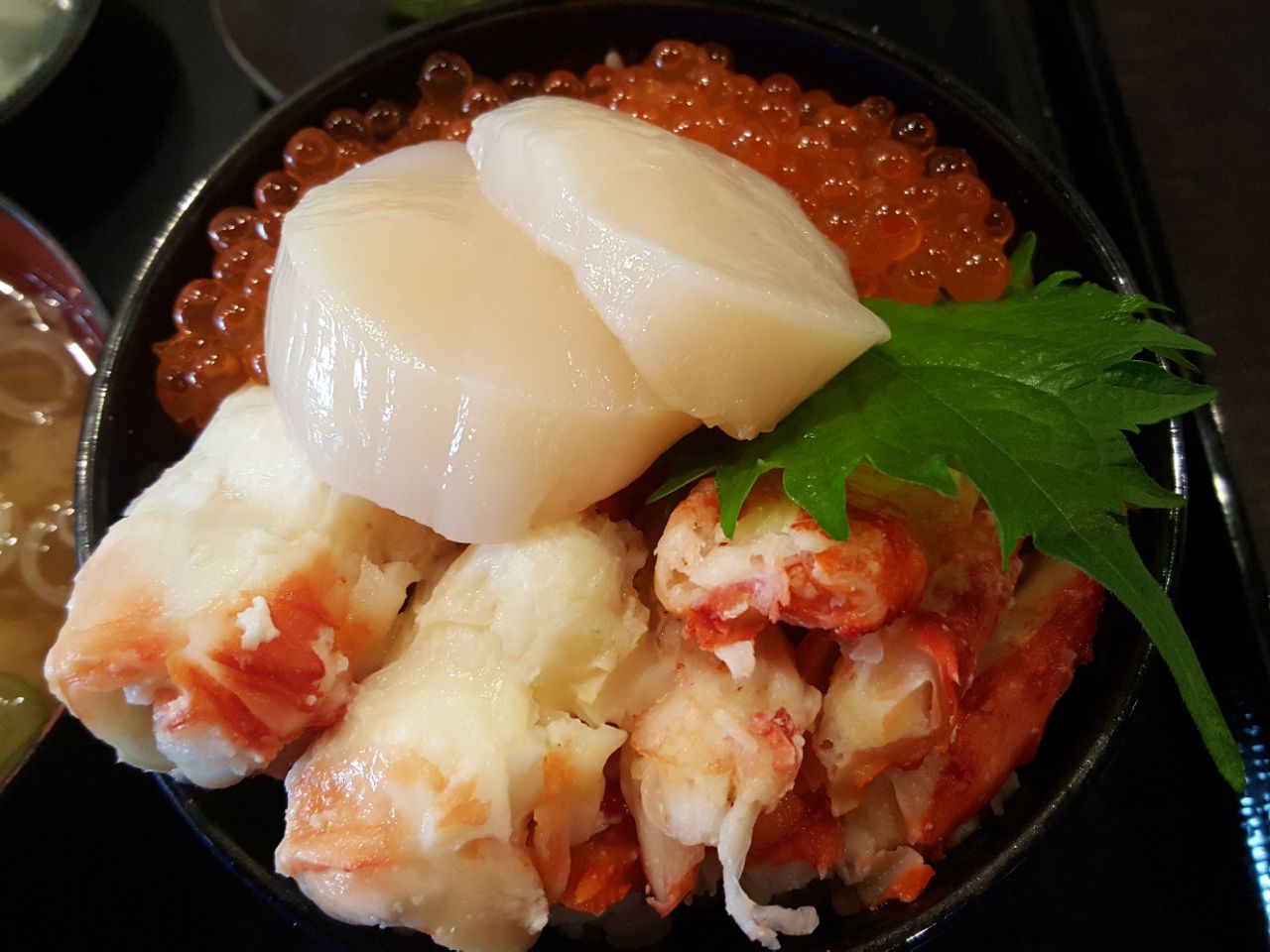 在北海道旅行,吃海鲜盖饭也是一个很重要的项目。我们去了札幌,最著名的海鲜市场二条市场。这里沿途,有好多的海鲜店面,卖各种的,海鲜盖饭套餐,或者现烤的海蛎,螃蟹等等。店主们都非常热情只要你稍微进去走近观看他们就会招呼你,或者其你试吃。我们在这儿选了一家店,主要呢是看他家门口排着好长的队,估计这是一个口碑很好的店吧。进去以后我们分别点了海胆盖饭和鲜贝牡丹虾盖饭。海胆是我朋友吃的,据她说不是最好,但我吃的鲜贝牡丹虾盖饭,特别鲜美。吃完饭以后,我们还在这里,买了1颗日本哈密瓜,带回酒店吃,哈密瓜切开以后水分很足,一人半个用勺子挖了吃,真的,像冰淇淋一样,甜美多汁,真是太爽了。