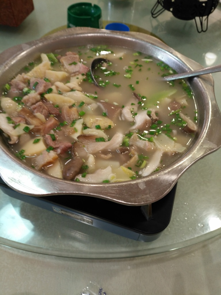 这家店在善德幼儿园对面,还是第一次来这边。一家家常菜馆,装修的也比较普通,比较接地气,店堂里挂着一帆风顺的大牌子。一上桌就给你一大盆热水,给你烫烫碗筷。既然是家常菜,点的也就是一些家常菜。包菜暖锅,油亮鲜香。咸肉笋锅汤,咸肉香香的很好吃,笋也挺好的。同事朋友小聚聚的好地方。