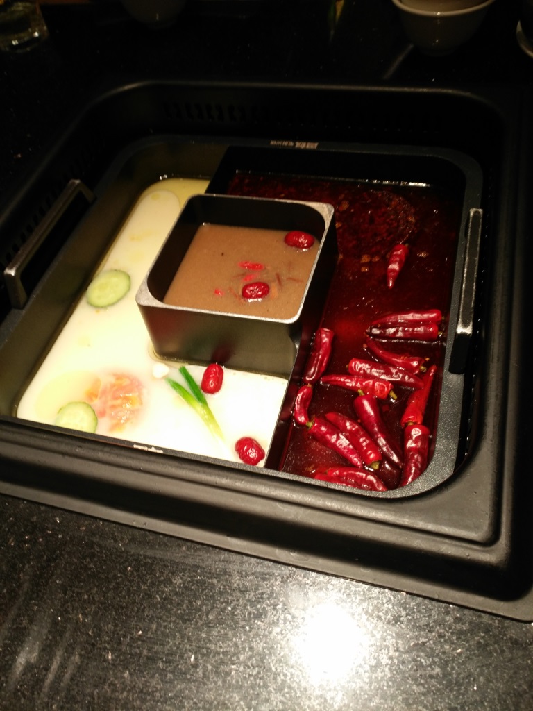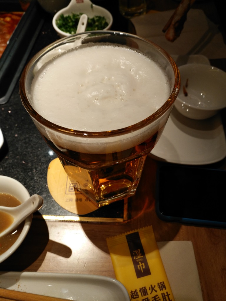 离家近的,招牌老远就看见了。环境挺好,装修得很有特色。锅底一般,不过酱料挺好,毛肚爽脆新鲜,是它家的特色。啤酒杯子好大,但是杯子为什么没有把手,必须两只手捧着。红糖糍粑很好吃,糯糯的,甜甜的,超级喜欢。服务员的服务很好,点一个赞。人很多,生意很好。