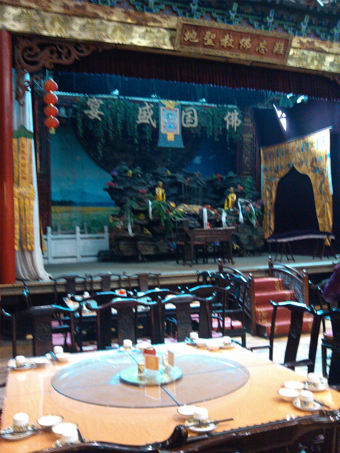 位于五台山景区比较中心的位置明清街,规模比较大,同时也是接待旅游团队的地方,餐厅旁边的购物店大家懂的。不过经营方打造的环境还是挺用心的,外观只是一幢两层高的普通楼房,里面的大厅却建了个大舞台,空间十分宽敞,而且不少斋菜都做得很逼真的荤菜样式,出品不错,迎合了普通游客的口味。