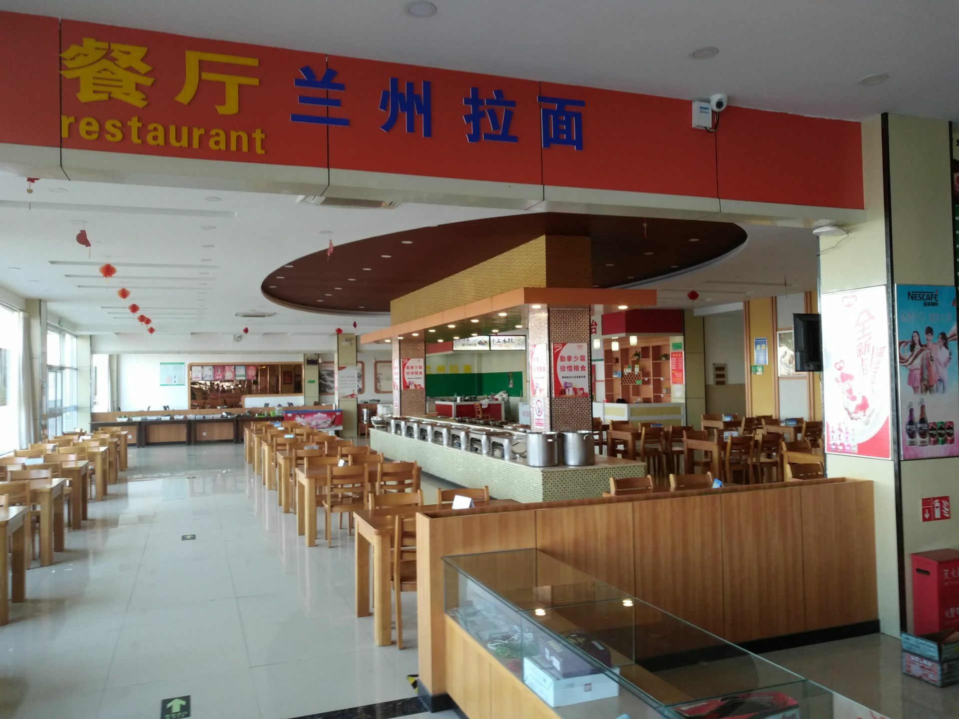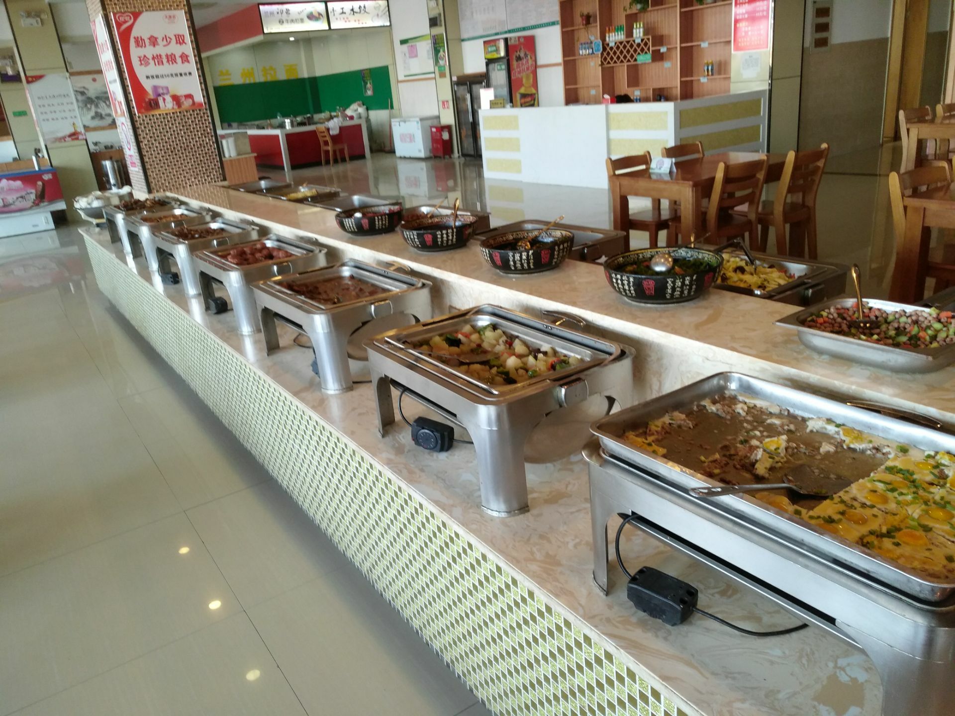 除此之外主要还是提供自助餐,菜的种类还真不少,做得味道还可以,中午就餐的人较多,过了这个时间段...服务区的餐厅营业面积不小,餐厅里供应兰州拉面,除此之外主要还是提供自助餐,菜的种类还真不少,做得味道还可以,中午就餐的人较多,过了这个时间段,人明显减少。