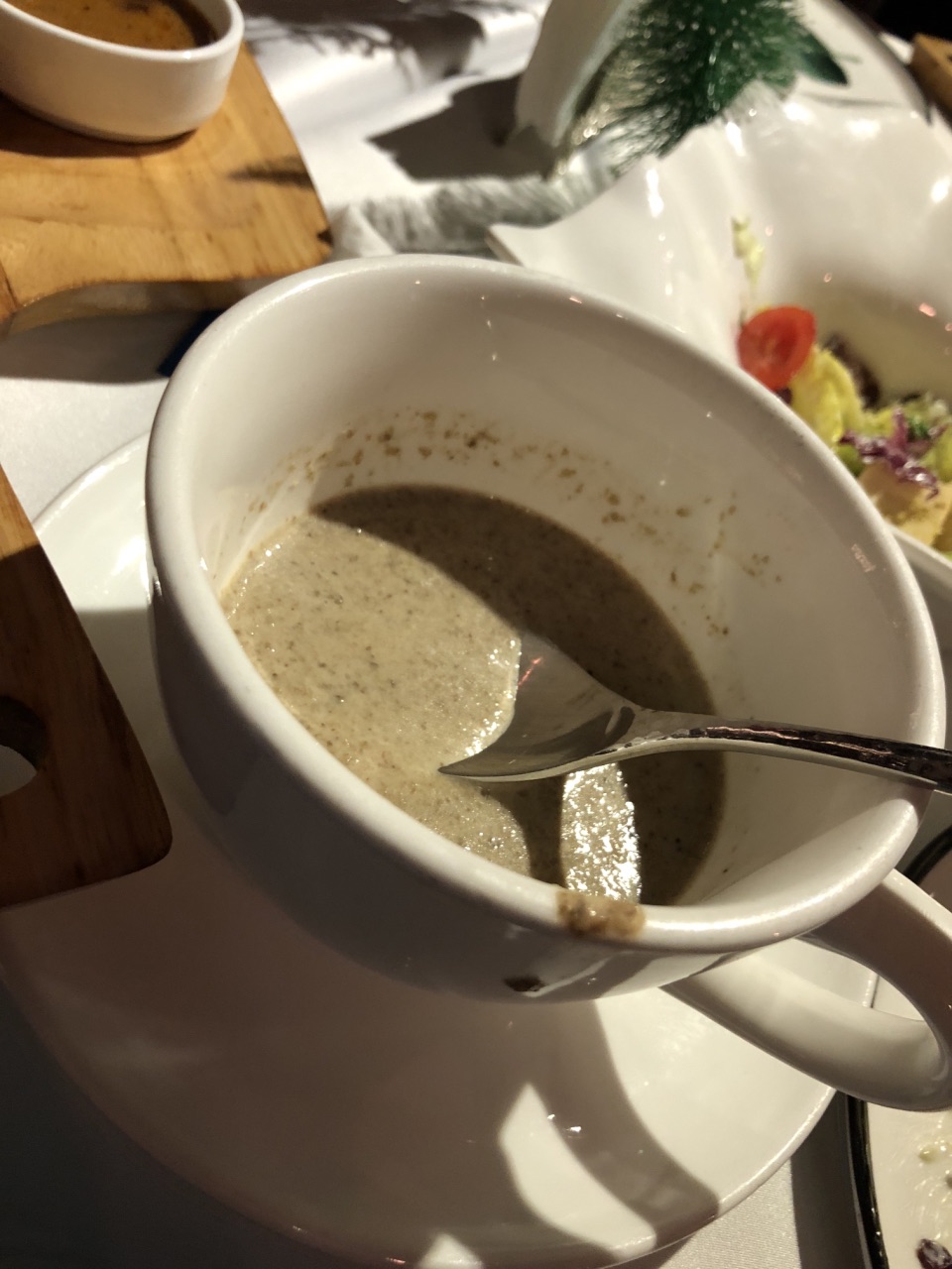 溜达着溜达就看到了他家招牌了 订酒店套餐送的餐里 有一个选项就是这里 双人餐含两套牛排 两份甜点 两碗汤 两份沙拉 还都不能更换品种 加钱都不行 后来觉得应该是找错人了 服务员说话不算数 这是唯一不满意的 其他味道环境什么的都很好~