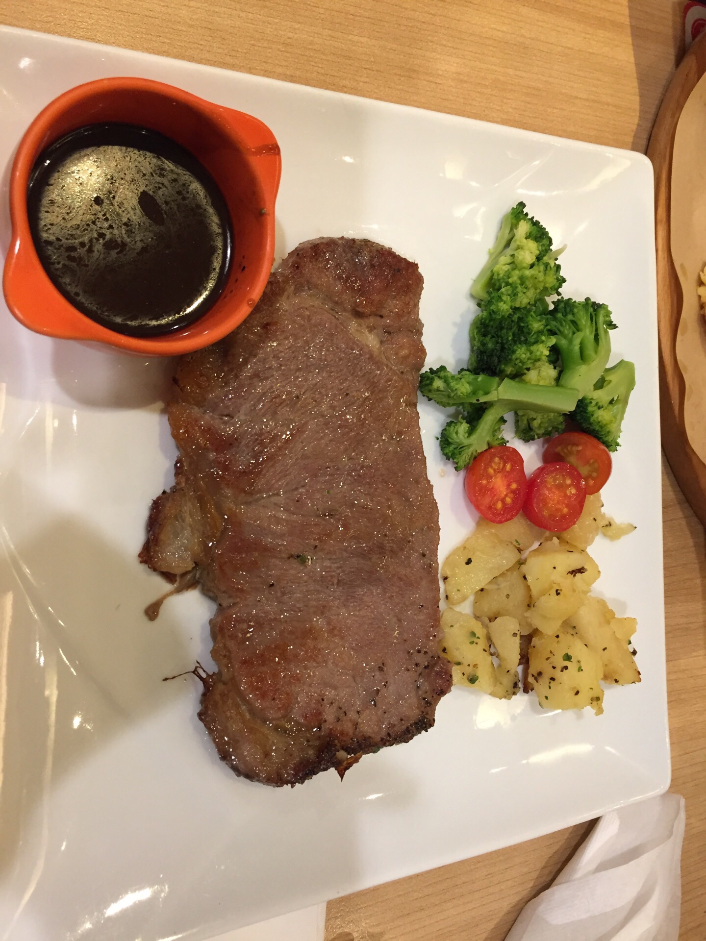 就在家里附近的必胜客,经常会过来吃一次。这次趁双十二在口碑上买了一个双人套餐,披萨牛排2选一,外带一堆其他菜的套餐,价格其实也不算便宜了。 最后没选披萨而是选了牛排,一份西冷一份黑椒,配的黑椒汁。必须说必胜客的西冷还是不错的,口感很嫩能吃出鲜味来,黑椒牛排相对口感就差了很多了。套餐里还有沙拉,小吃拼盘,甜点之类的,七七八八吃下去也足够2个人吃饱了。就是可惜本来想喝蘑菇汤没了,换成了红菜汤,没想到意料之外的也还行。 饮料也是多选的,冲绳黑糖奶茶感觉是加糖版的珍珠奶茶,个人其实更喜欢雪糕黒天使。 总得来说必胜客现在单品价格都不便宜,如果有个套餐的话还是比较划算的。