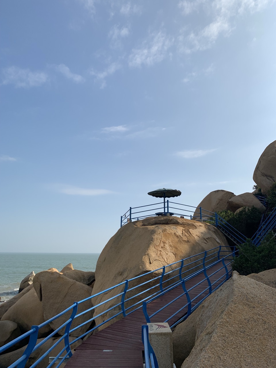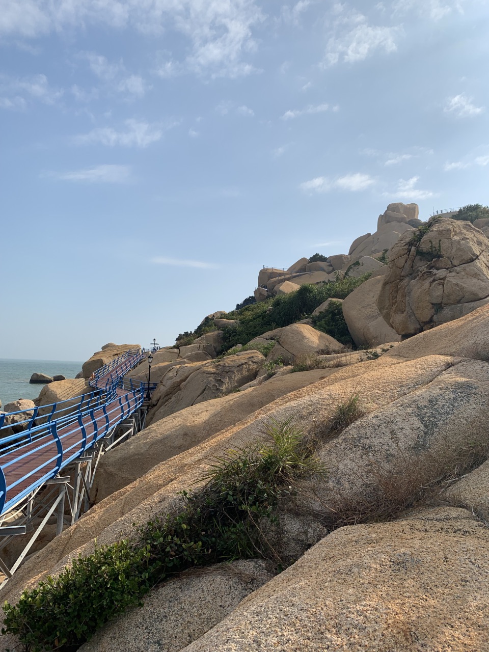 所有美景都在栈道两旁。买了门票穿过酒店就是公园栈道。挺不错的地方,可以来看看这个地质海洋公园位于台山市北陡镇南部海湾,从西部沿海高速公路的北陡收费站下高速,沿着海岸线往西南方向走大约半小时,就到了。买了门票穿过酒店就是公园栈道。所有美景都在栈道两旁。挺不错的地方,可以来看看。