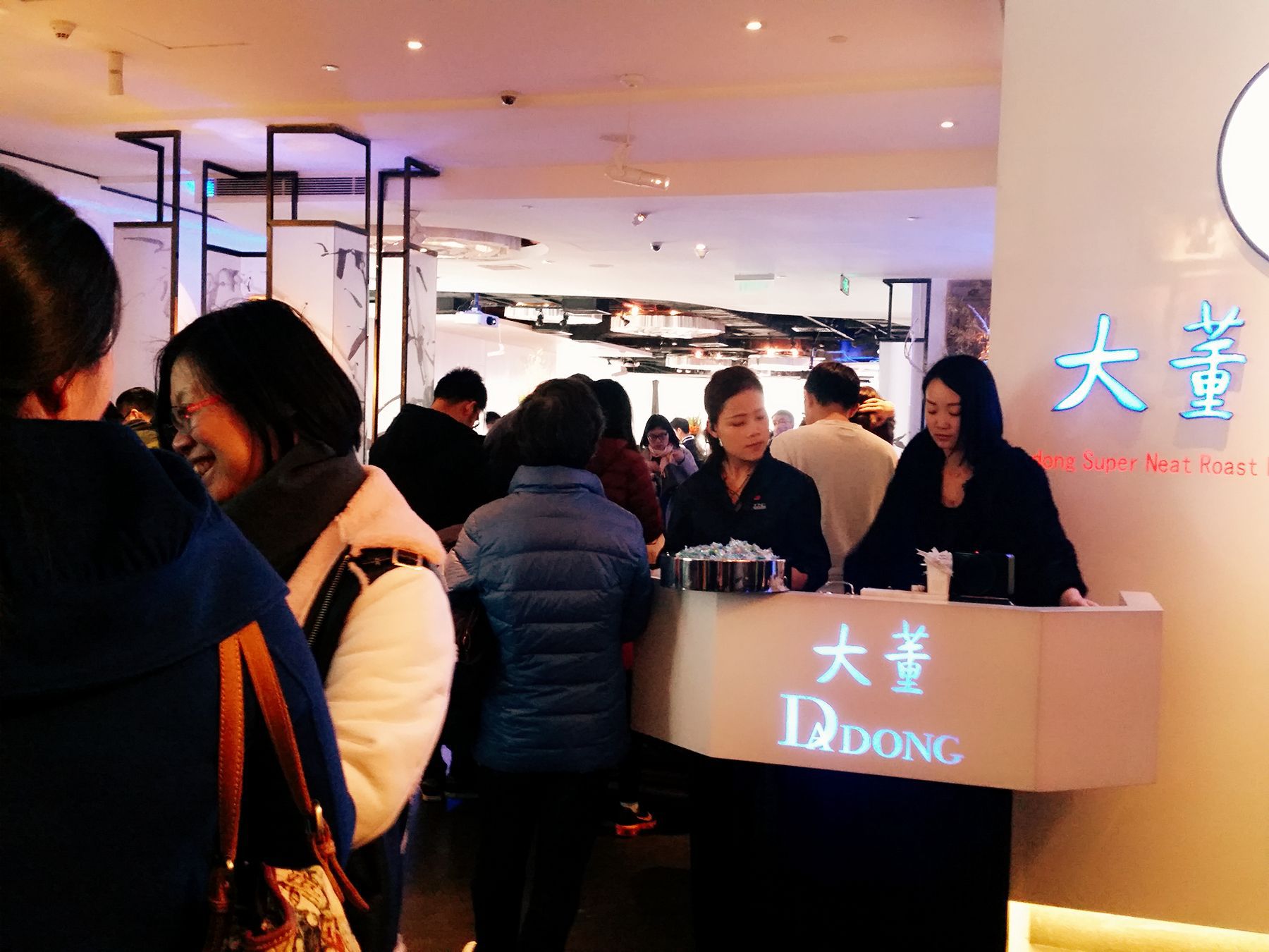 大董VS小大董,没有对比就没有伤害,低幼版小大董完败 2017-3-3 3月3,女孩节雏祭り/ひなまつり所以,三个中年小阿姨的烤鸭小分队出动啦 艾小米是二刷了,所以知道排队的火爆程度!先遣部队艾小米12点23分拿号,第二批人马1点过来,最后进场差不多1点40了……额不晓得现在的大董还这么疯伐 [环境]很不错,紫色灯光+中国水墨,梦幻!等候区域还有几种茶水供应,水杯很漂亮,加分不少!不过由于生意太过火,艾小米应该是吃到第二批吧,桌子下面有垃圾还油腻,都来不及打扫收拾了,有些不适