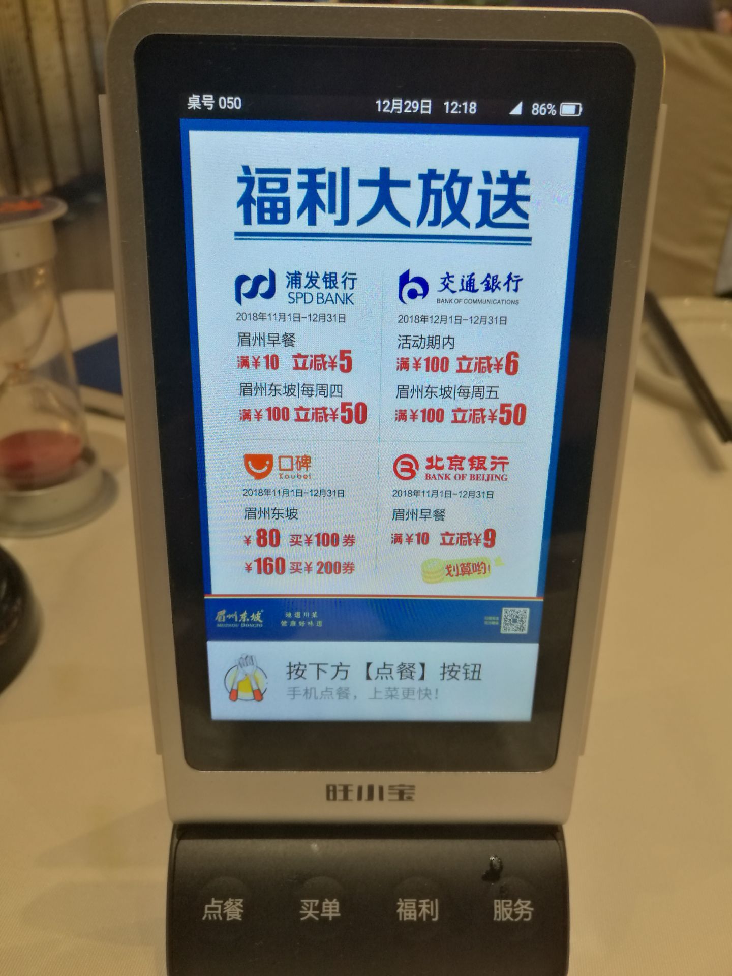 网友2018-12-29手机扫码点餐、下单、结账都更快捷方便了五彩城的人气现在是太旺了,停车位经常要等不短时间,眉州东坡面积够大但基本也是要等位,就餐环境和细节比原来做的更到位了。手机扫码点餐、下单、结账都更快捷方便了。