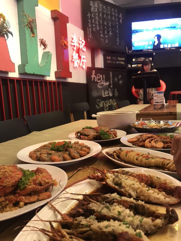 于是搜索李记海鲜美食城,太好了,还有免费车接送,于是当晚我们一行9人就去了,到店还有免费的唱歌...