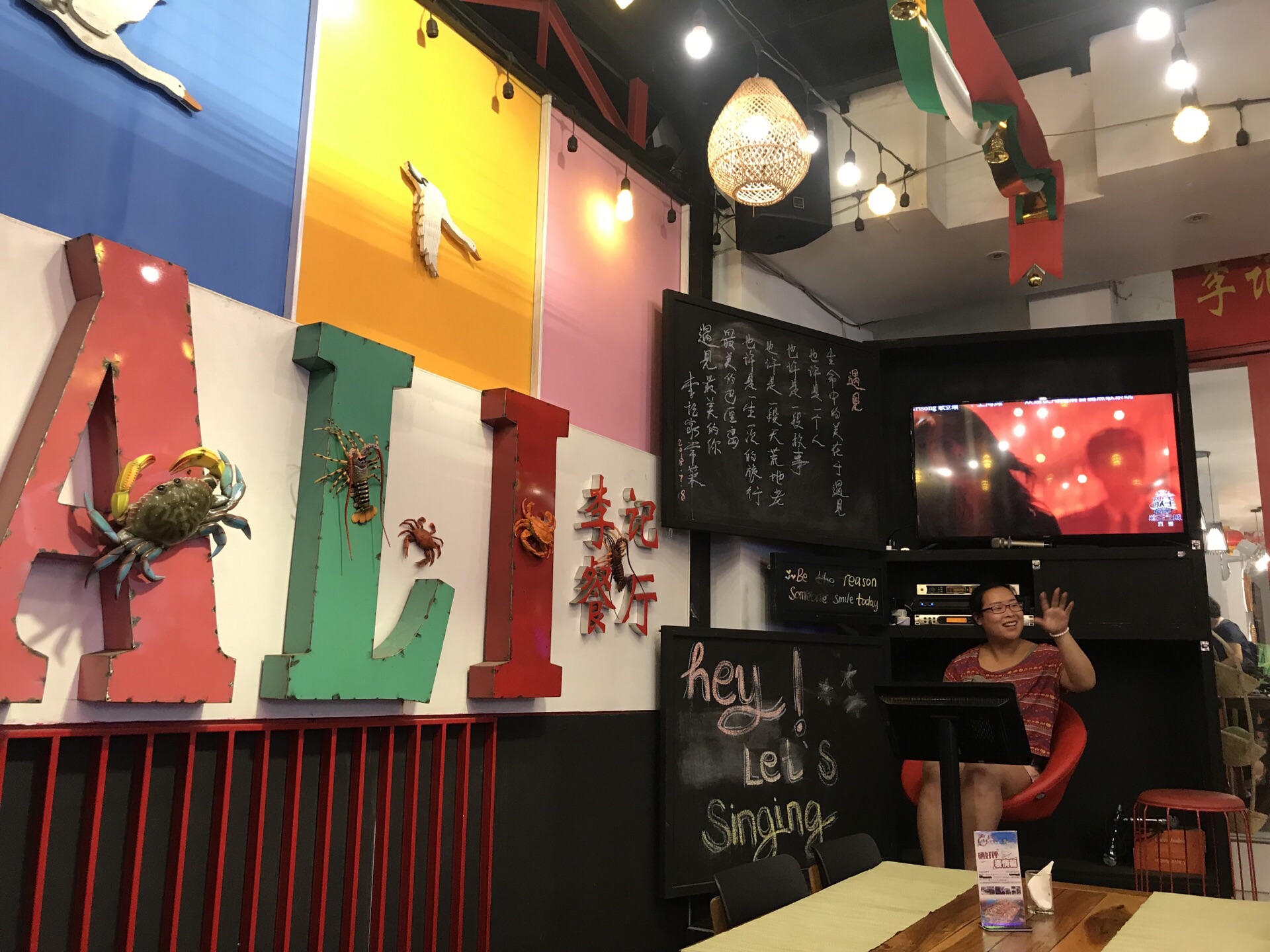 无意发现这家海鲜城觉得风格不错,我们13人昨晚来尝试一下,真心不错,皮皮虾和石斑鱼真是美味到爆...坐在车上欣赏着异域巴厘岛风情,无意发现这家海鲜城觉得风格不错,我们13人昨晚来尝试一下,真心不错,皮皮虾和石斑鱼真是美味到爆,饭后还可来一曲我的拿手曲,看来这里这几天我们要成为常客了。