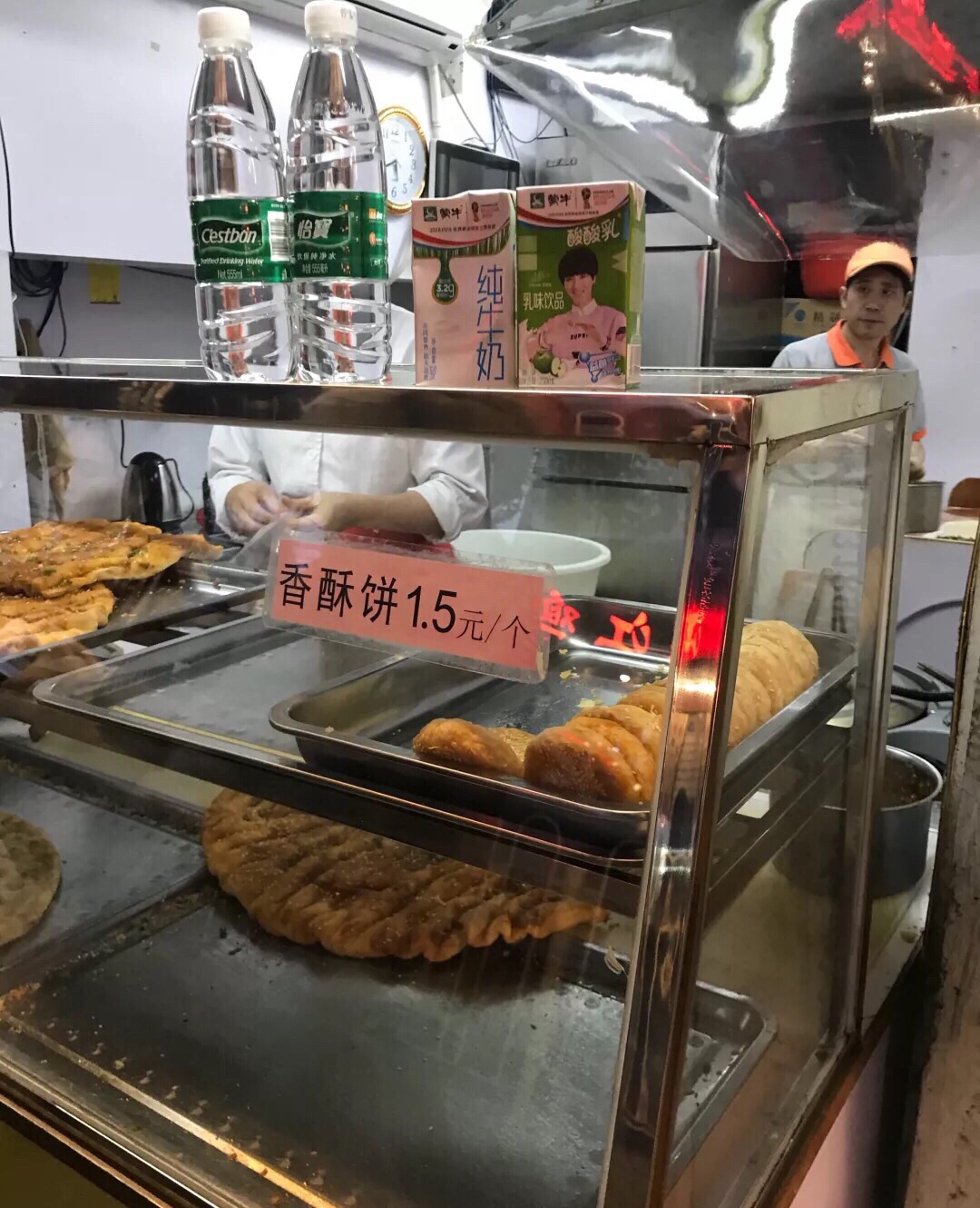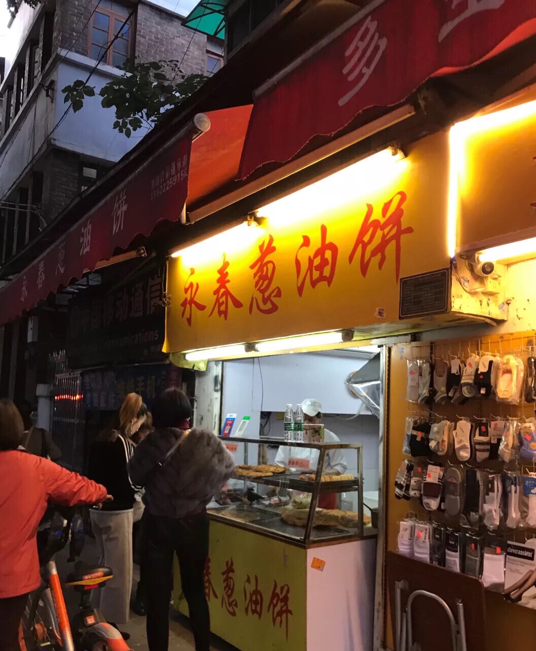 这是一家主打葱油饼的小店,据说是网红店。店面很小,无法堂食,只做外面