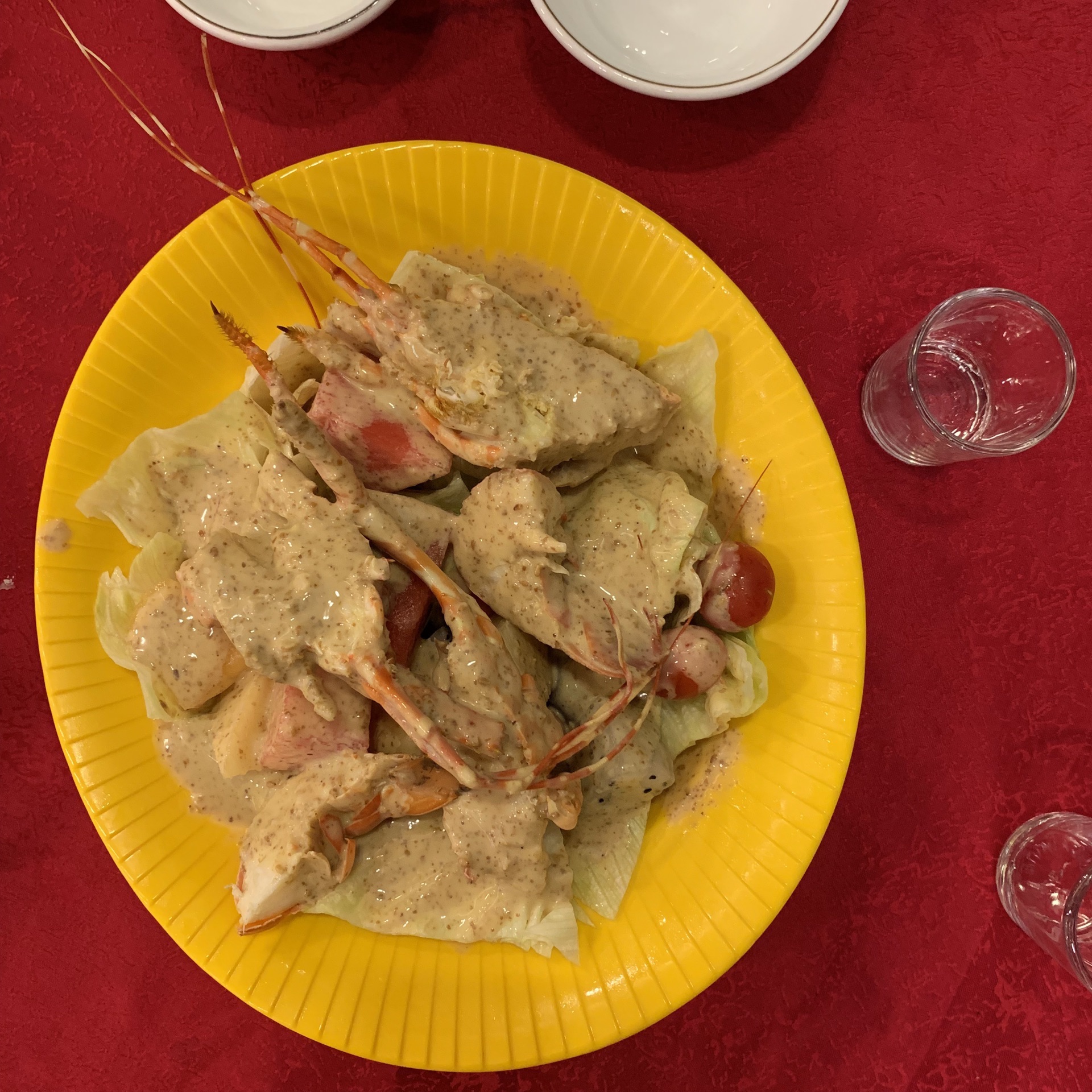 总评: 去厦门总归要尝一尝海鲜吧,这家是当地人推荐,我也觉得真心不错。 价格不贵,份量很足,态度也多热情的。 餐馆环境还凑合,朋友家人聚一聚,挺好的。 推荐哦,好多特色菜品都可以尝尝,不踩雷。 评分:84分 性价比:❤❤❤❤ 到了厦门,放下行李,,马不停蹄的就打车到了这家门店,因为离我们是最近的。 开在海鲜市场旁边,周边又是居民区,所以来这里吃饭多是周边居民,午饭时点也没有排队,很好啊,最讨厌的就是吃东西排队了。 点单的时候,店员也会合理推荐,并且劝你不要点多了,这点我很喜欢。 他们那边吃饭前都会先来一钵热水,供客人烫碗烫碟,初来乍到,我对于那钵热水惊呆了,不懂用意为何。问了服务员才晓得。我还以为是某一道菜的一部分呢。 【海鲜饼】8元 很好吃哦,外皮很薄,中间包的是海鲜肉馅儿,炸得刚刚好,外脆里嫩,又不会很油腻。 我觉得一口气吃4个,是轻松的事儿。 【黑蒜汤】小份48元 黑蒜汤因为是招牌热门菜,所以我才点了,因为我对蒜是很排斥的。 但是这个汤的蒜味不明显哦,基本上没有大蒜的臭味,喝起来很暖很健康。 汤里面还有很多蛤蜊和排骨哦,炖得很够火候,排骨都挺耙软的。 【鱿鱼芋丝】58元 挺有巧思的一道菜,鱿鱼圈里塞满了芋头丝丝,蒸过后鱿鱼软弹Q韧,芋丝软糯香绵。 一口下去,那种多层次的口感特别感人,妙不可言,吃了才懂哦。 58元,份量太足了,我们拼了命吃都没吃完。勾的汤汁挺鲜甜的,略略有点回甜,好吃。 【龙虾沙拉】 这个还是排名第一推荐的菜品呢,真的不建议点哦。龙虾就是比较小只的龙虾仔,肉并不多,点其他菜品都比这个好多了。 虾肉很少,垫底的全是各种生菜,淋了丘比沙拉酱,吃得很用力 了,菜还是没吃完。 两人吃了这些菜,真的很撑,除了龙虾沙拉不是很满意之外,其他我觉得都很棒哦!