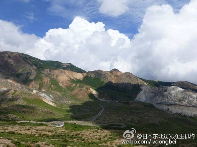 福岛县磐梯吾妻天空之路,经过高汤温泉,净土平直到土汤峠,沿途风景优美、春天还会有雪之回廊,4月上旬开通。周边环境仿佛如净土一般,抬头看看广阔的蓝天,仿佛下一秒就能触到天空。交通:从JR福岛站乘坐“辅道交通·磐梯吾妻スカイライン定期バス”循环巴士,一圈用时约1小时30分钟。
