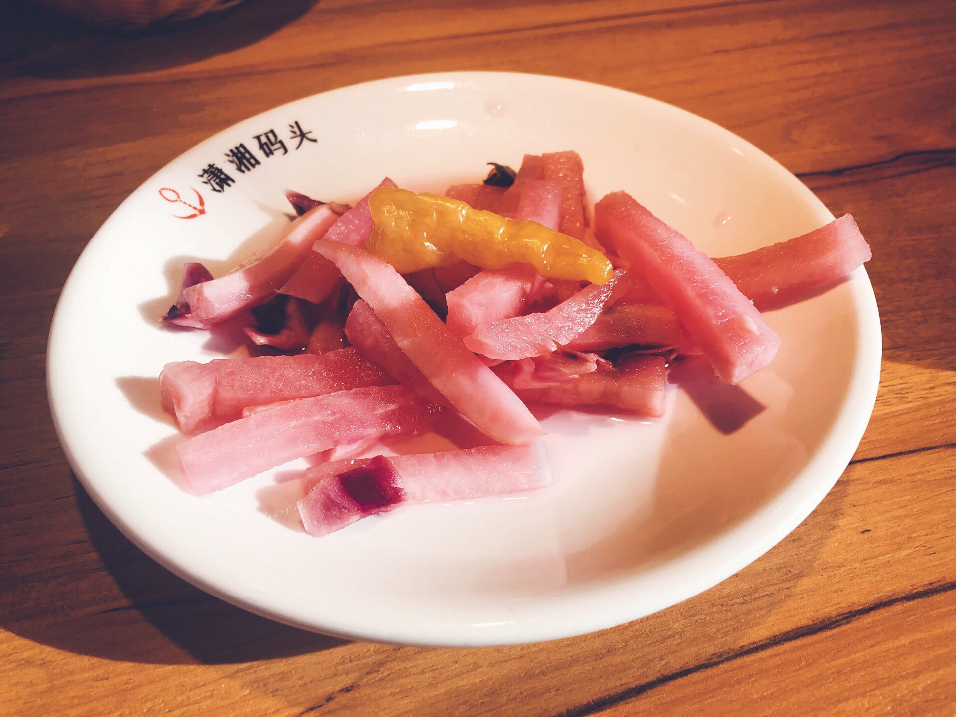湘菜馆主打臭鳜鱼 两层很大 靠窗位置阳光很好 餐前给备了热水 腌萝卜条还有爆米花️ 「香煎臭桂鱼俩条」臭鳜鱼味道不错 不愧是招牌 香臭香臭的 「火宫殿臭豆腐」臭豆腐真的超级辣 基本辣味都在汤汁上 本身酥脆还可以 「五彩大拉皮」颜色五彩 很清爽 麻酱汁儿有点稀 另外建议食客自己倒就行 不用服务员代劳 「原汁肉枣汤」这个真的爱不起来 猪肉丸子超级腻 半个就打住了 配了一小筐涮菜还可以 但汤汁也有猪肉丸的腻味了 基本放弃