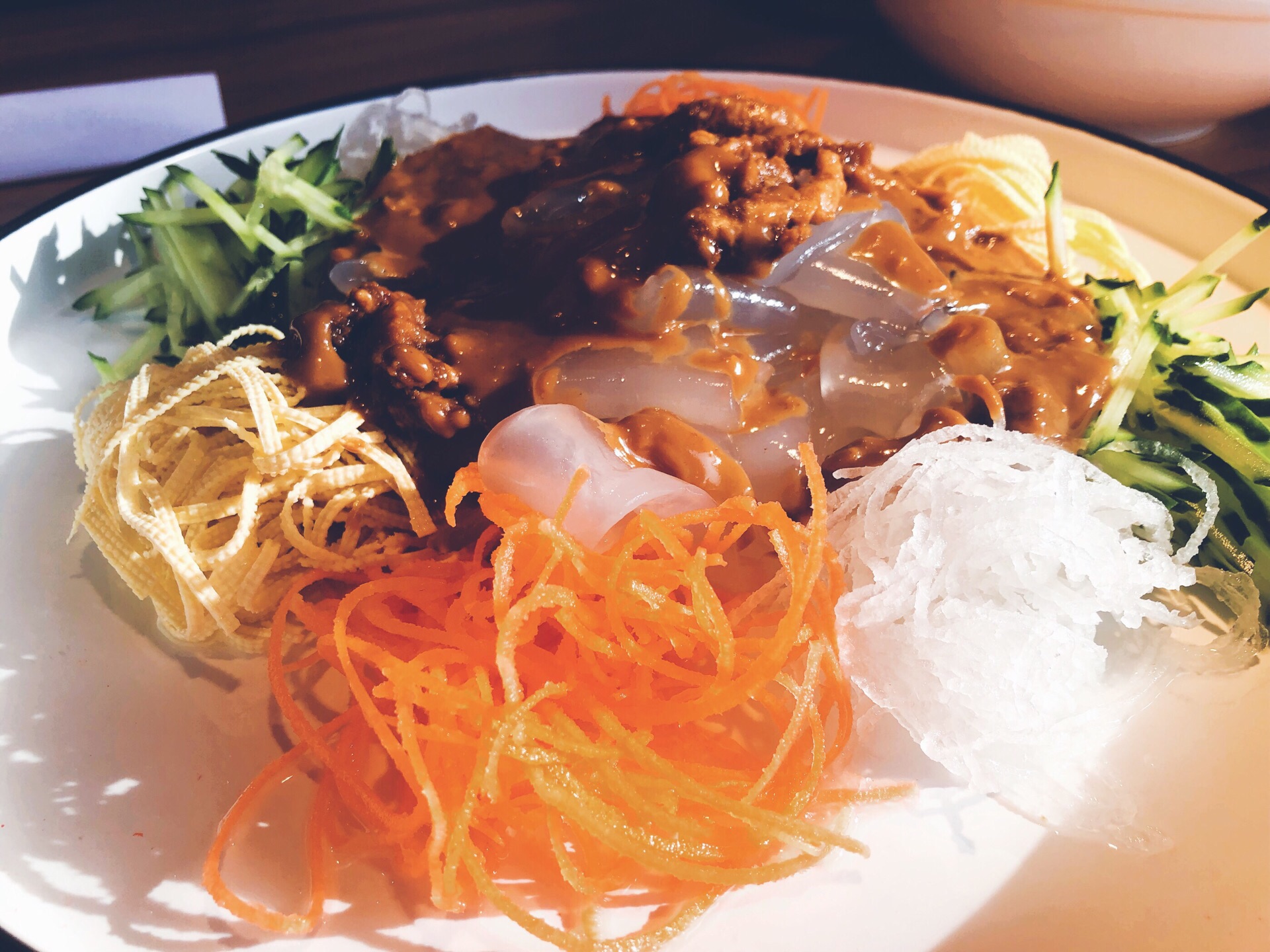 「火宫殿臭豆腐」臭豆腐真的超级辣 基本辣味都在汤汁上 本身酥脆还可以 「五彩大拉皮」颜色五彩 很清爽
