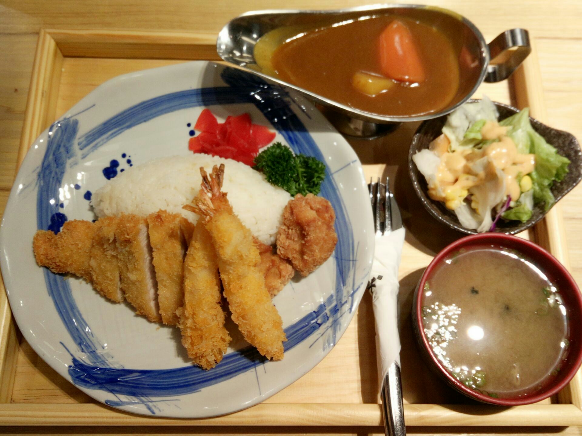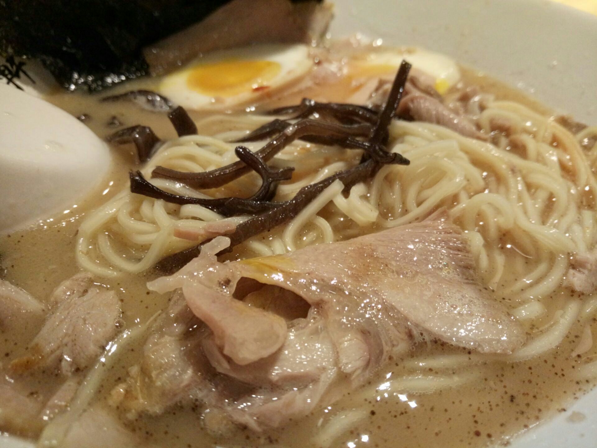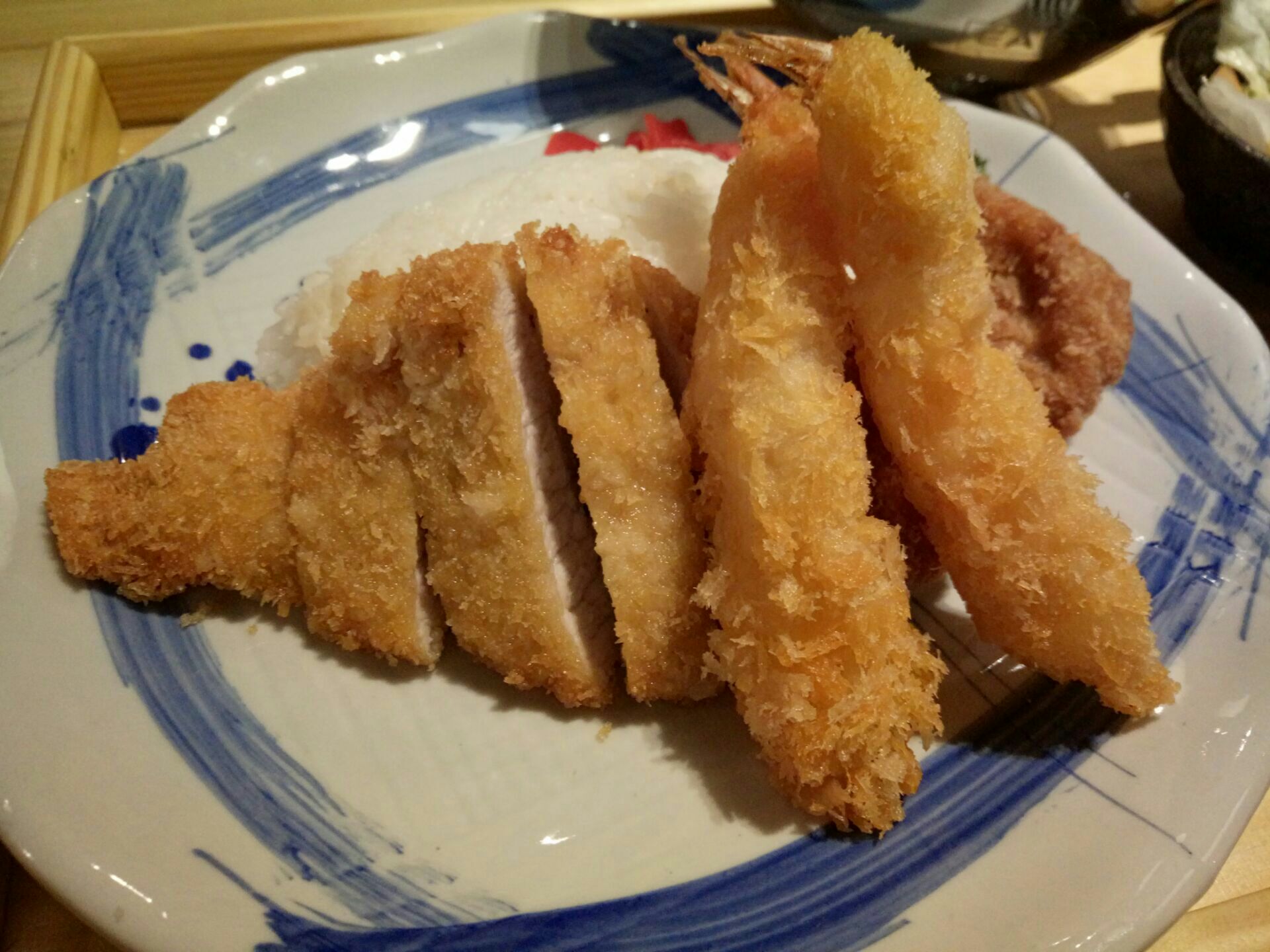 鸡块和虾都硕大无比,咖喱酱很浓稠,拌饭好吃。博多一豚轩,好吃的日式拉面馆,当然,他还有许多其它餐品