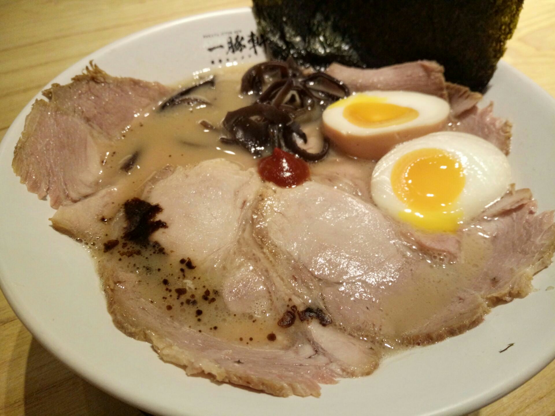 博多一豚轩,好吃的日式拉面馆,当然,他还有许多其它餐品。 环境不错,一进门,和风扑面。服务很周到,上菜速度挺快。 【浓厚招牌豚骨拉面】45元。汤头浓郁,面筋道。豚骨薄而大片,一碰就碎,拌着面倒也好吃,溏心蛋不错,很嫩。 【招牌咖喱饭】45元。超级大份!鸡块和虾都硕大无比,咖喱酱很浓稠,拌饭好吃。 【和风炸豆腐】12元。豆腐很嫩,沾取酱汁味道好。
