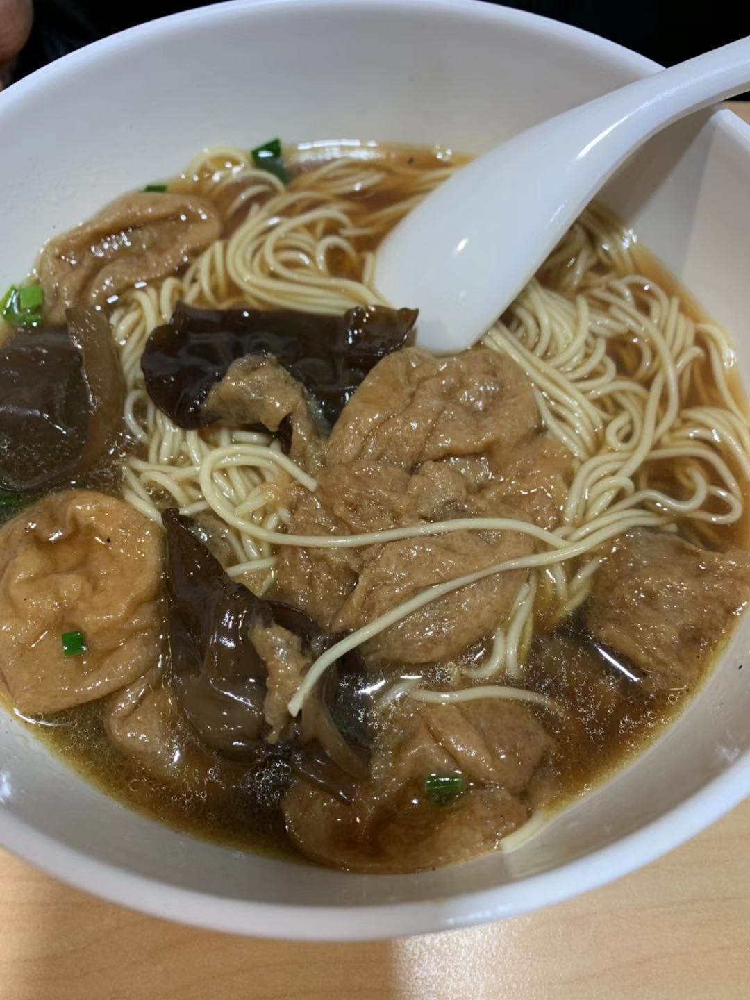 焖肉面的肉蛮酥嫩的,但却是冷的,口感就有点差了这家店是在田林路上的一家连锁店,因为地处田林新村,故每天人气都很旺盛,周边的居民都会过来随意吃点。面条细但很劲道,木耳面筋面里面的油面筋量蛮多的,但偏咸了些。焖肉面的肉蛮酥嫩的,但却是冷的,口感就有点差了。