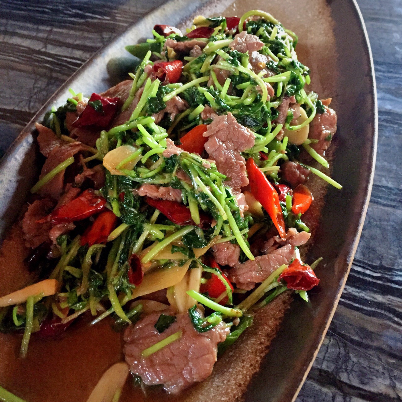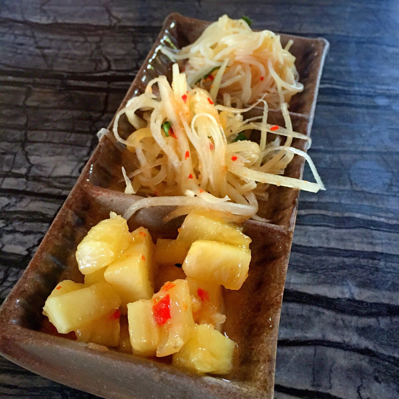 酒店的泰傣餐厅,服务很一般,上菜速度很慢,平均半小时以上才能出菜,所以提前过来才行。环境就是简式的布局风格。这里的咖喱味道很不错,而且也很下饭,老虎虾个头大,弹性足。水芹炒牛肉,与平时吃过的水芹长得不同,放了蒜和辣椒,味道很不错,就是油挺多的。送的小菜中,青木瓜拌得不错,酸爽,爱吃的可以点色拉。现在酒店会员还打了9折,送了水果,算是实惠的。